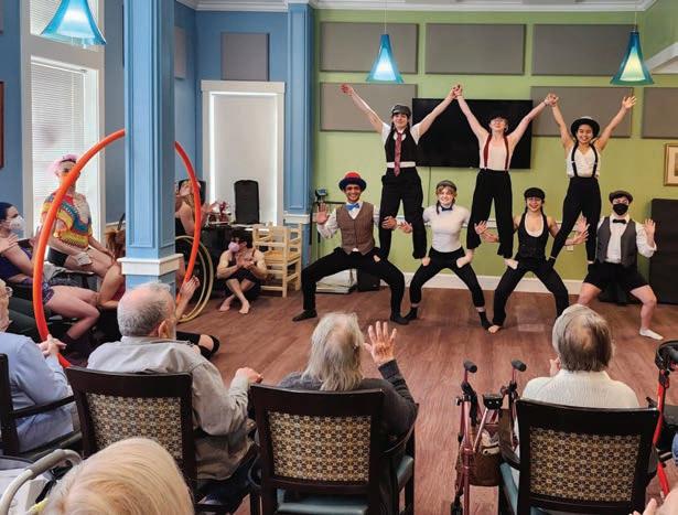 from throughout the Brattleboro area which regularly bring programming to Bradley House. This includes students at Hilltop Montessori School sharing their learning with residents, children from Horizon Preschool celebrating the first day of May, and performers from the New England Youth Theater enacting scenes from their latest production. Brattleboro’s rich cultural scene is very much a part of programming at Bradley House, as