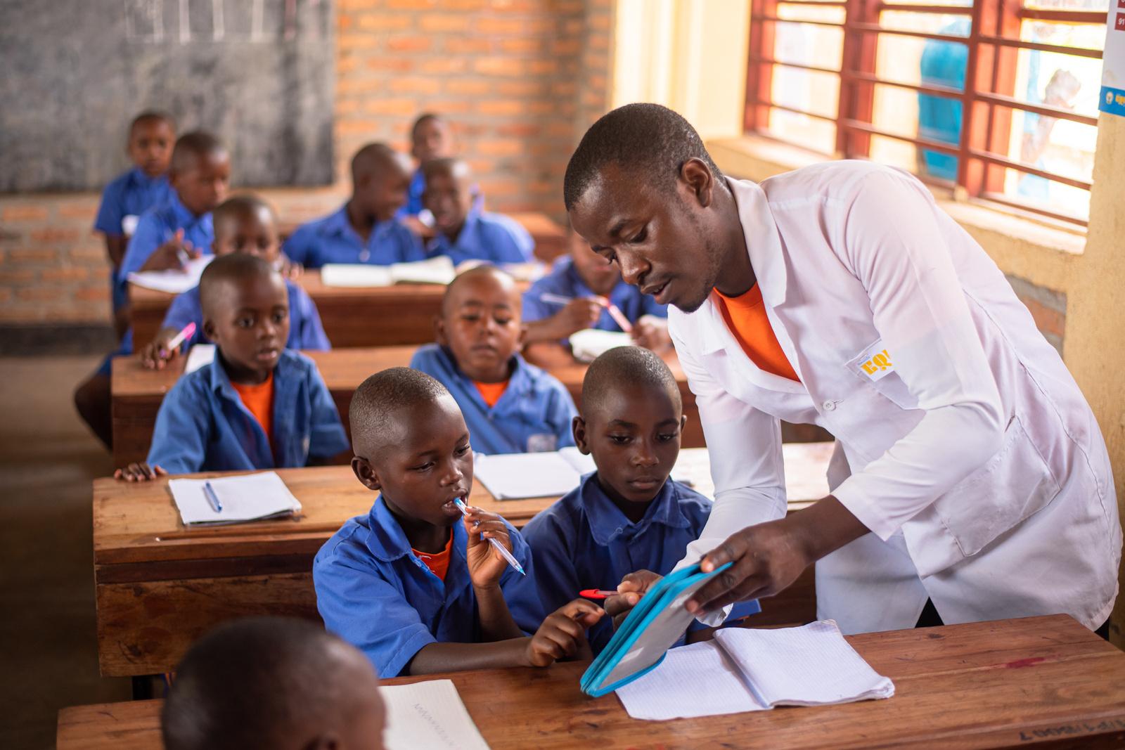 The teachers are also equipped with teacher guides and classroom management techniques that boost pupil engagement and creativity These teacher tablets contain well researched and carefully designed daily lesson guides built around the Rwandan curriculum