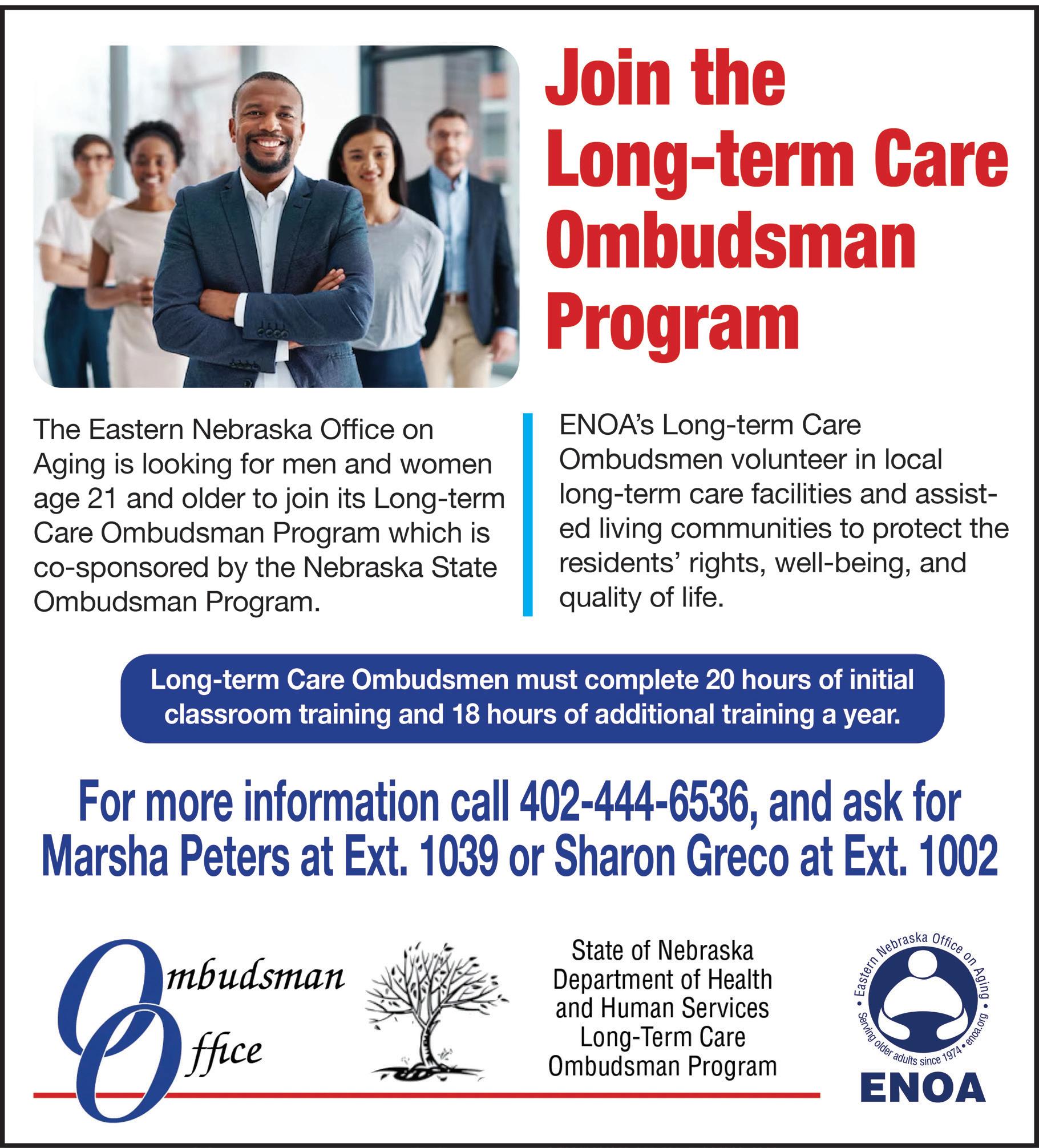 ENOA Board of Governors: Mary Ann Borgeson, Douglas County, chairperson; Don Kelly, Sarpy County, vice-chairperson; Lisa Kramer, Washington County, secretary; Pat Tawney, Dodge County, & John Winkler, Cass County.