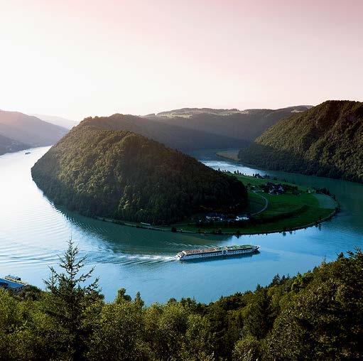 During the day, especially if you’re gently cruising along the river, you might while away the hours in the ship’s centre-piece lounge, with its comfortable sofas, coffee tables and floorto-ceiling windows. Curl up with a book, nurse a drink from the bar, perhaps join friends for a hand or two of cards, and make plans for your next port of call. From time to time, the lounge is also where your cruise host, dedicated to helping you make the most of your holiday, will introduce upcoming destinations and excursions planned for your arrival. Each of the cruises features at least one included tour, and there’ll be other optional excursions available to book on board.
