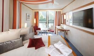 All cabins also boast windows or portholes from which to take in the passing views. C and D grade cabins offer Juliet balconies, giving you the chance to really enjoy the sweeping scenery from the comfort of your cabin. On A-ROSA SENA (see pages 63), all cabins have spacious outside balconies as standard.