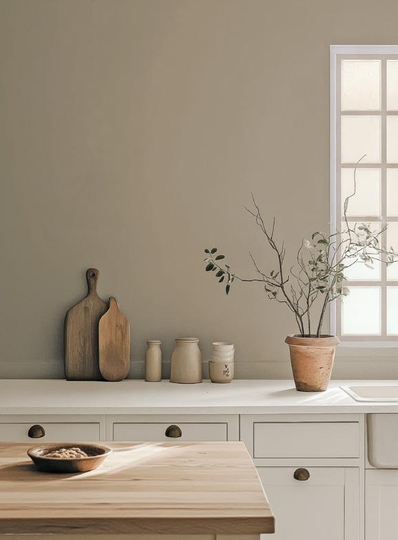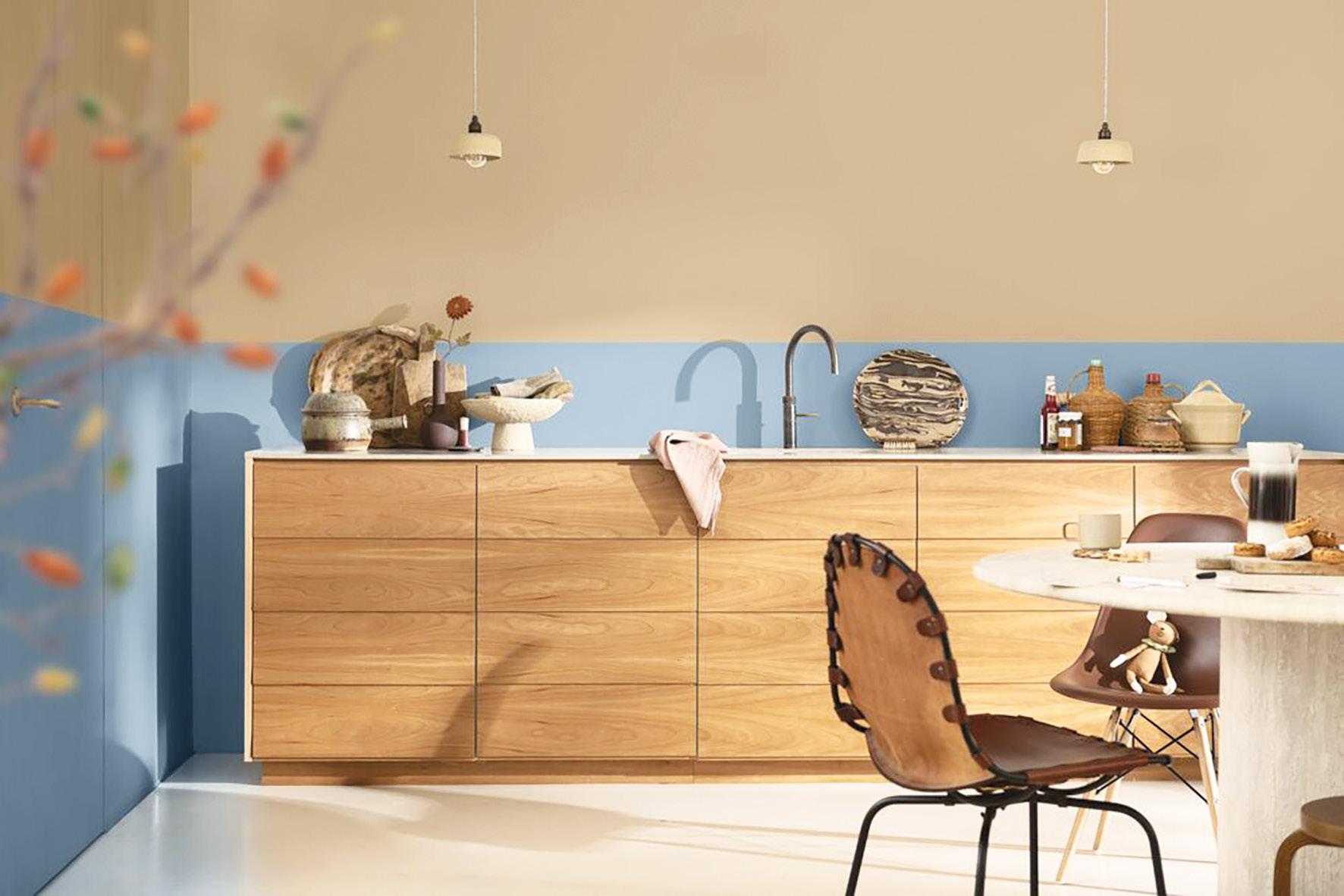 Kitchens can be infused with a breath of fresh air by choosing Mellow Flow for cabinetry or walls — a light, uplifting sky blue that radiates clarity and serenity. This gentle hue brightens the room, making it feel open and welcoming, especially when paired with earthy terracotta and clay accents for a bright, welcoming space that feels calm and inviting, perfect for hosting and entertaining.