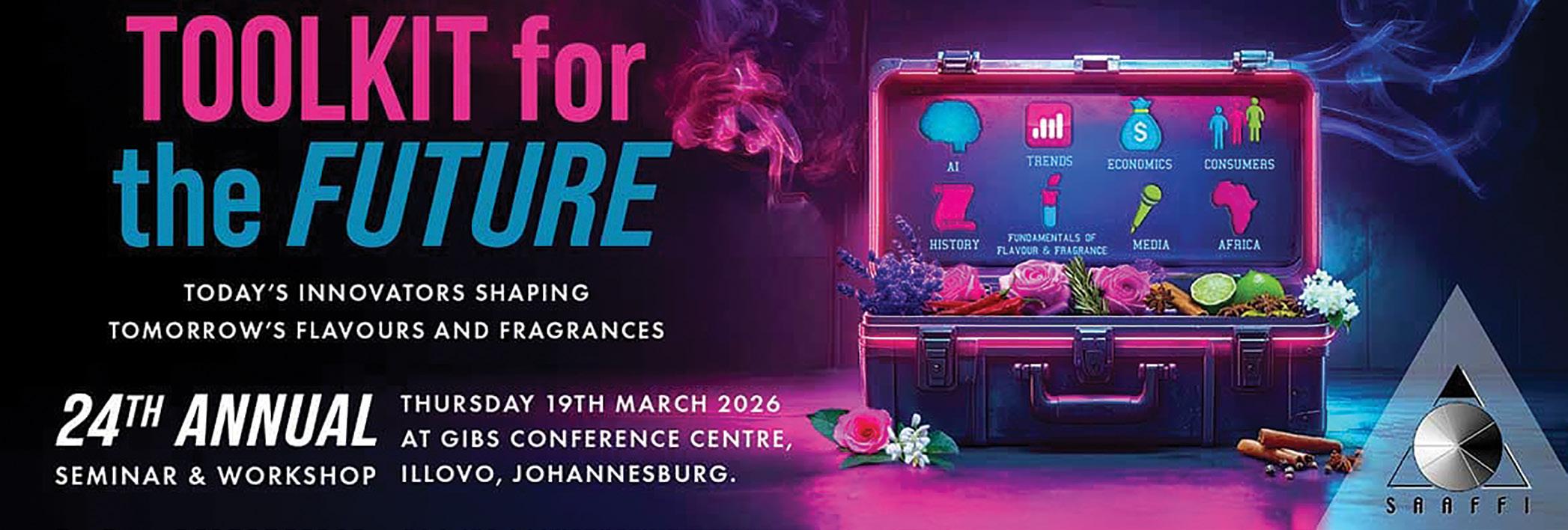 Notably, the seminar balances global insight with regional relevance. Contributions from international industry leaders are complemented by African voices in green chemistry, economics and AI, as well as perspectives from local small-scale farmers and entrepreneurs. This mix reinforces the growing recognition that sustainability and innovation must be contextual, inclusive and locally anchored to be truly effective. Now in its 24th year, the SAAFFI seminar continues to serve as a predictive event for the South African flavour and fragrance sector, offering both strategic foresight and practical engagement. Its emphasis on collaboration, skills development and future-focused leadership underscores the role of industry bodies in helping members navigate rapid technological change while maintaining the human connection at the heart of sensory science.
