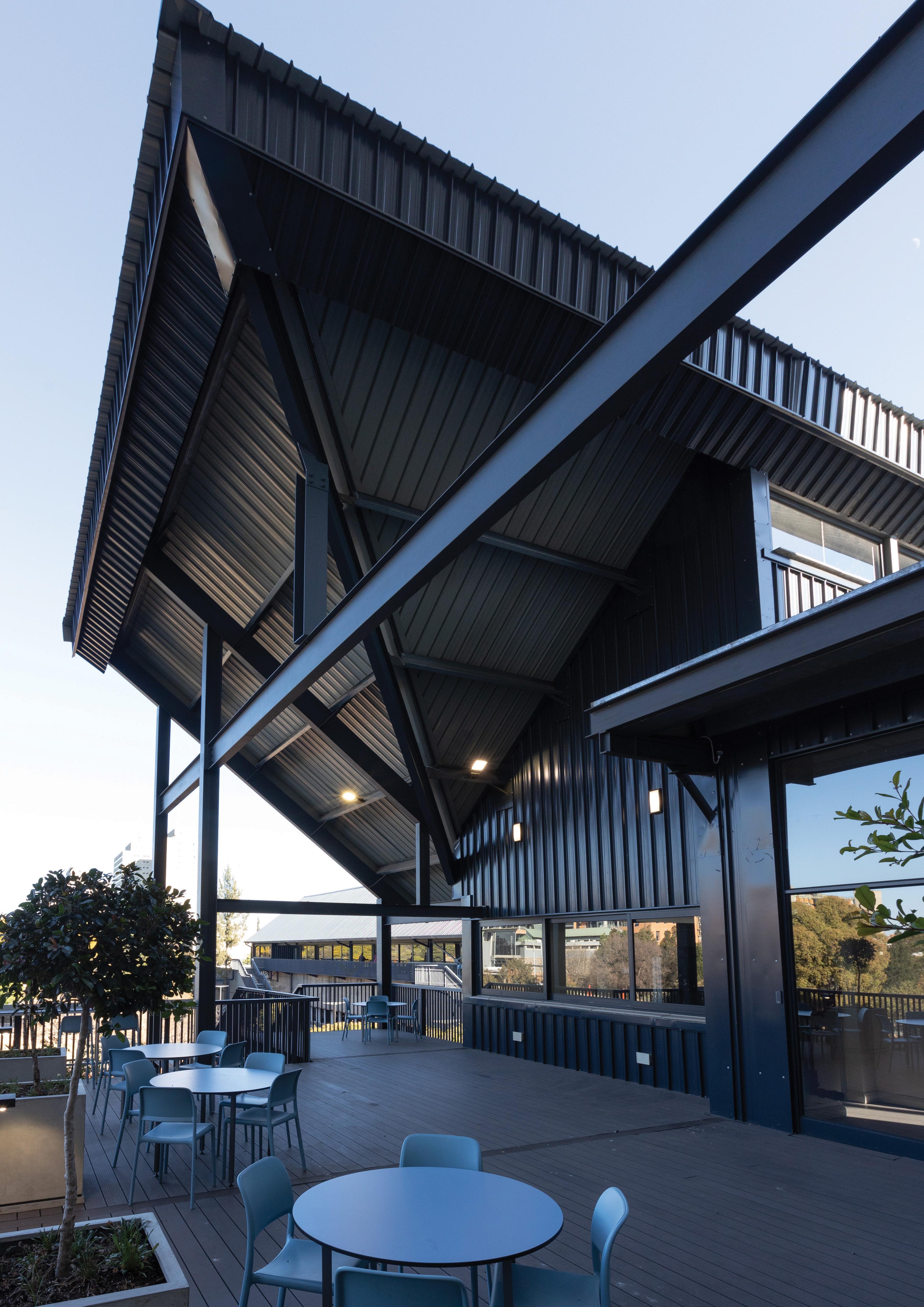their position on campus. The different parts of the buildings were also to function as one, or as separate, secure facilities in themselves. Some parts of the complex are also shared – like the viewing deck on the roof that is both a place to see the night sky through telescopes and an area for VIP guests to watch a match.