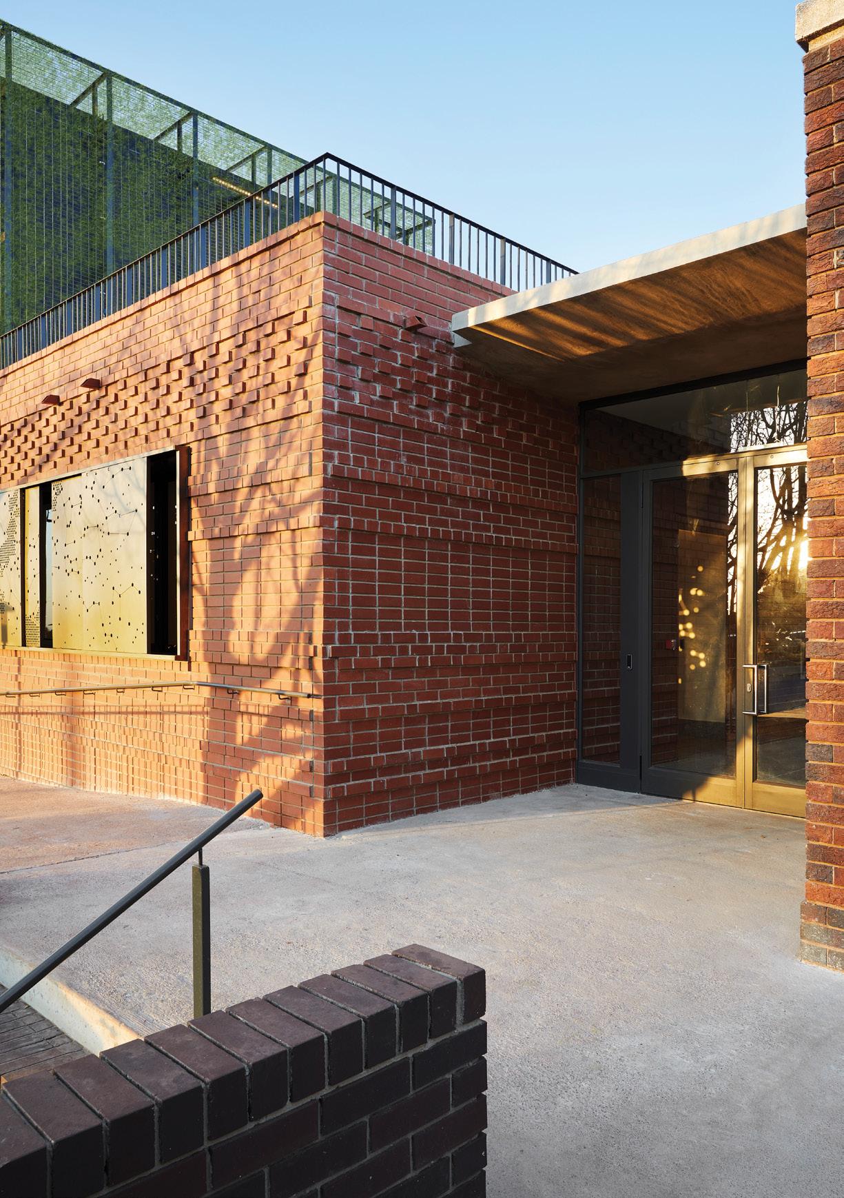 visible, and adding colour and texture to the existing brutalist grey. Like the concrete, clay bricks are a durable, lowmaintenance material.
