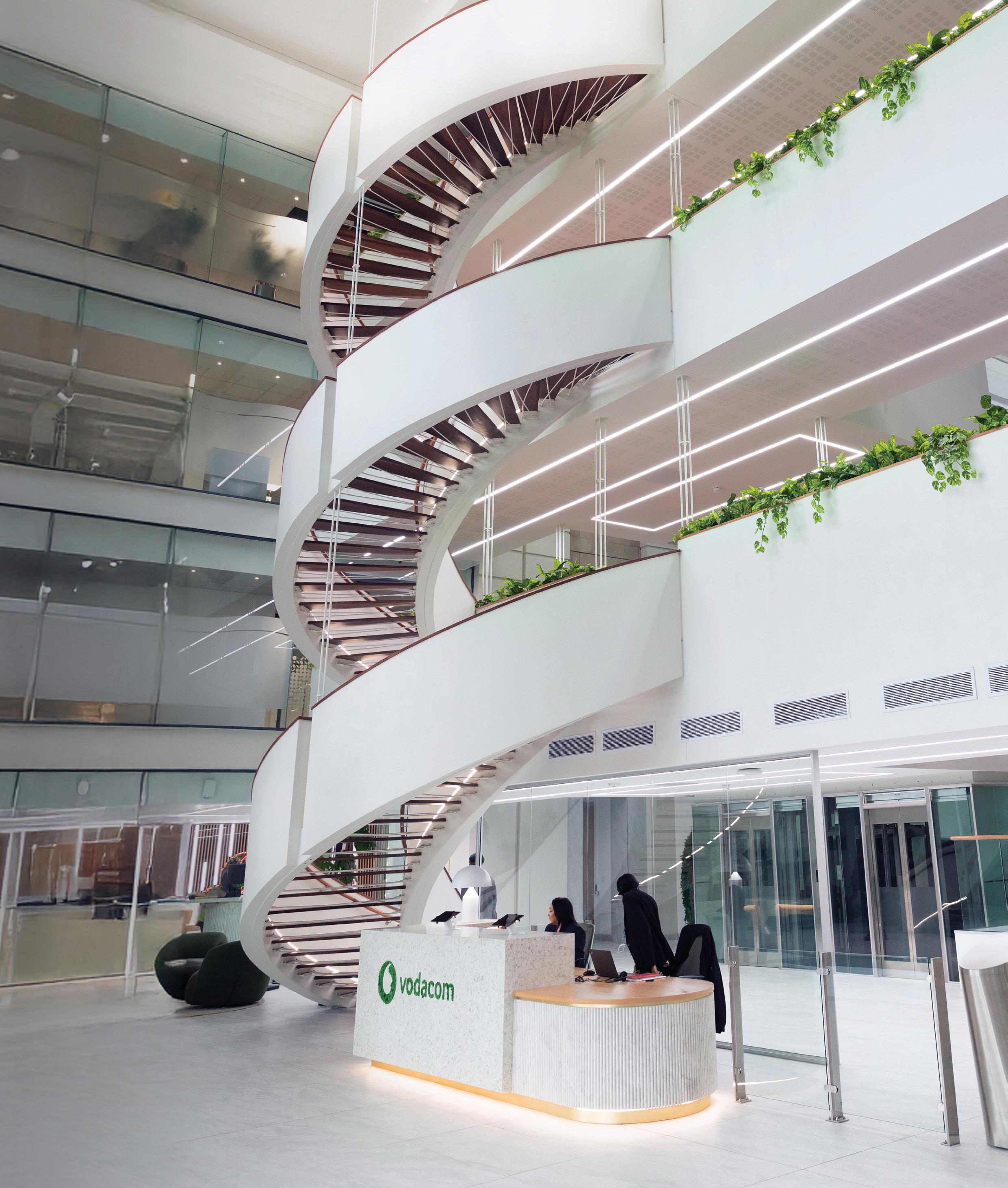 After being damaged by a fire in 2023, KMH Architects transformed the interior of Vodacom’s Century City headquarters.