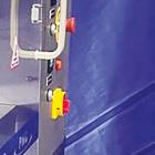 also be retrofitted in existing rooms provided the floor is suitable by levelling the rails on the existing surface and pouring a 150mm reinforced slab. A low ramp is needed at the entrance. The mobile bases run on the rails and support pallet racking which is specially designed for use in a mobile application. The bases are motorised and energy efficient. Maximum tonnage per base varies but should not exceed 360 tons. In larger stores mobiles are arranged in banks of up to 10 bases, each with its own moving aisle. The bases are controlled either by push buttons, remote control, or by an interface with the warehouse management system. An access aisle is created at the push of a button.