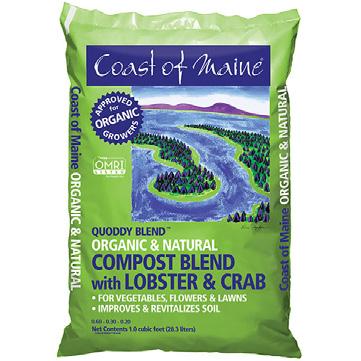 Quoddy Blend Lobster Compost: Well-draining mix of chitin- and calcium-rich lobster shells, compost, and peat humus. Ideal for vegetables and herbs.