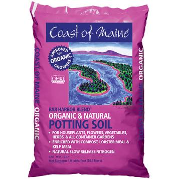 Bar Harbor Blend Potting Soil: A lighter mix that still holds moisture. Formulated for house plants, hanging baskets, window boxes, and all other containers. Made with salmon, blueberry, and lobster composts, lobster shells, sphagnum peat, perlite, and kelp meal.