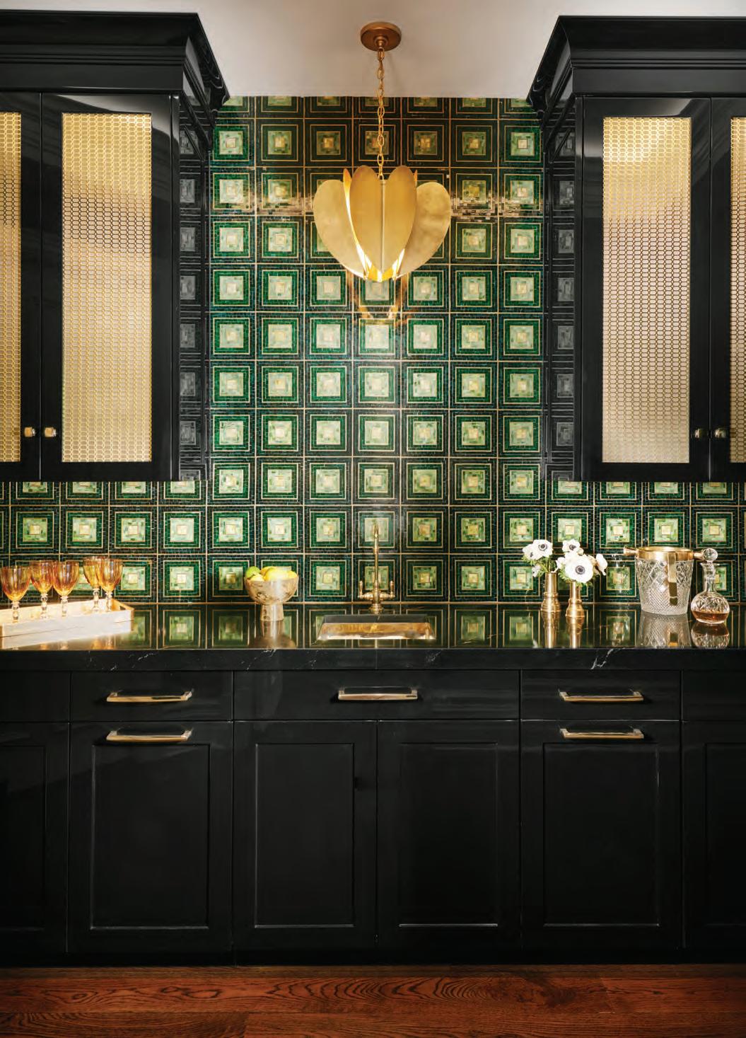 Black, gold, and green combine to create a dramatic and sophisticated look in this butler’s pantry. See the story on page 118.