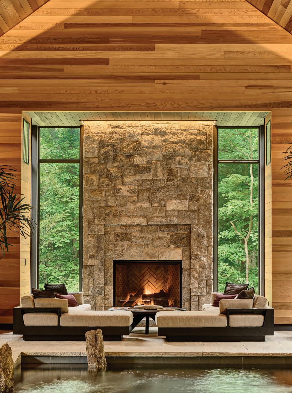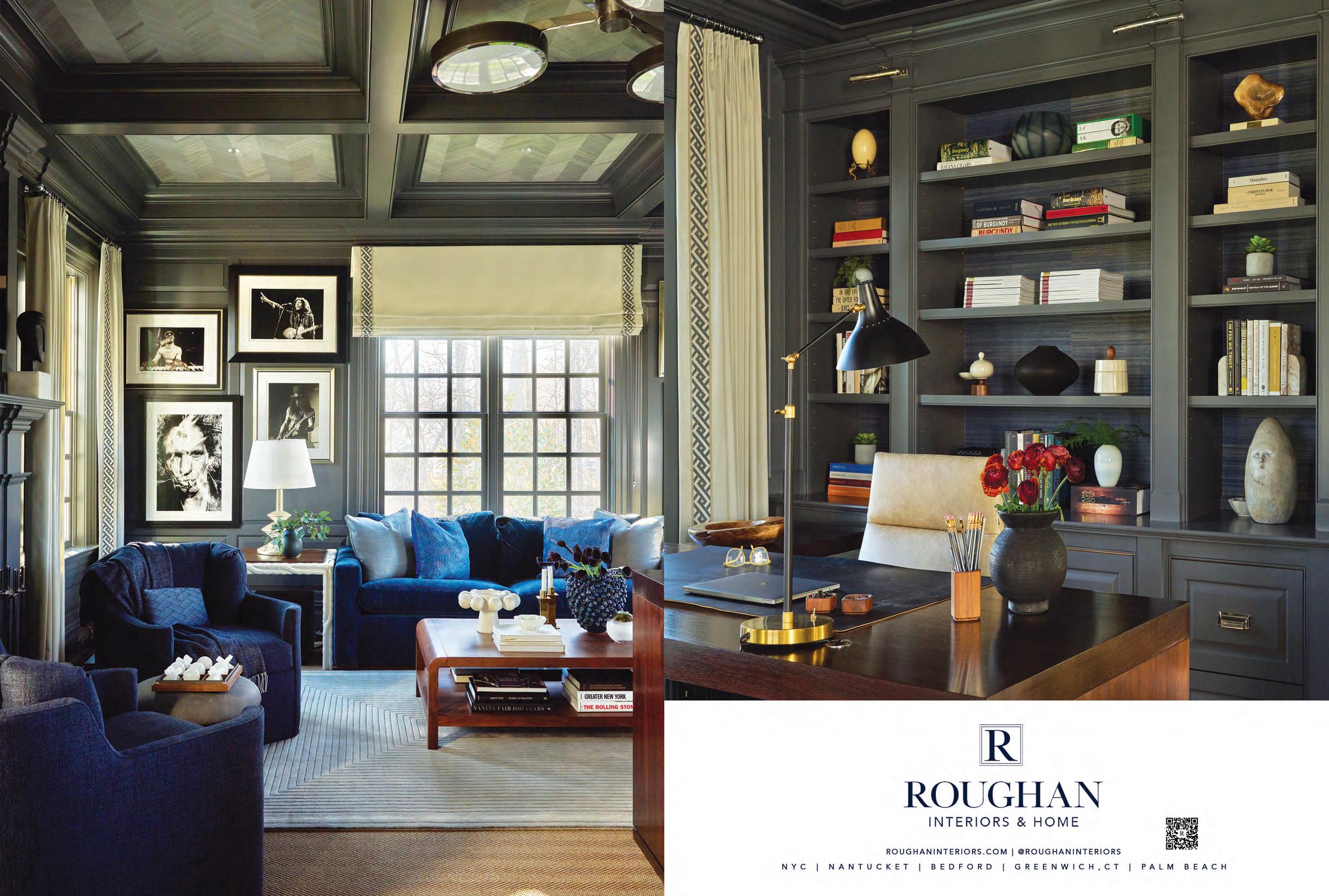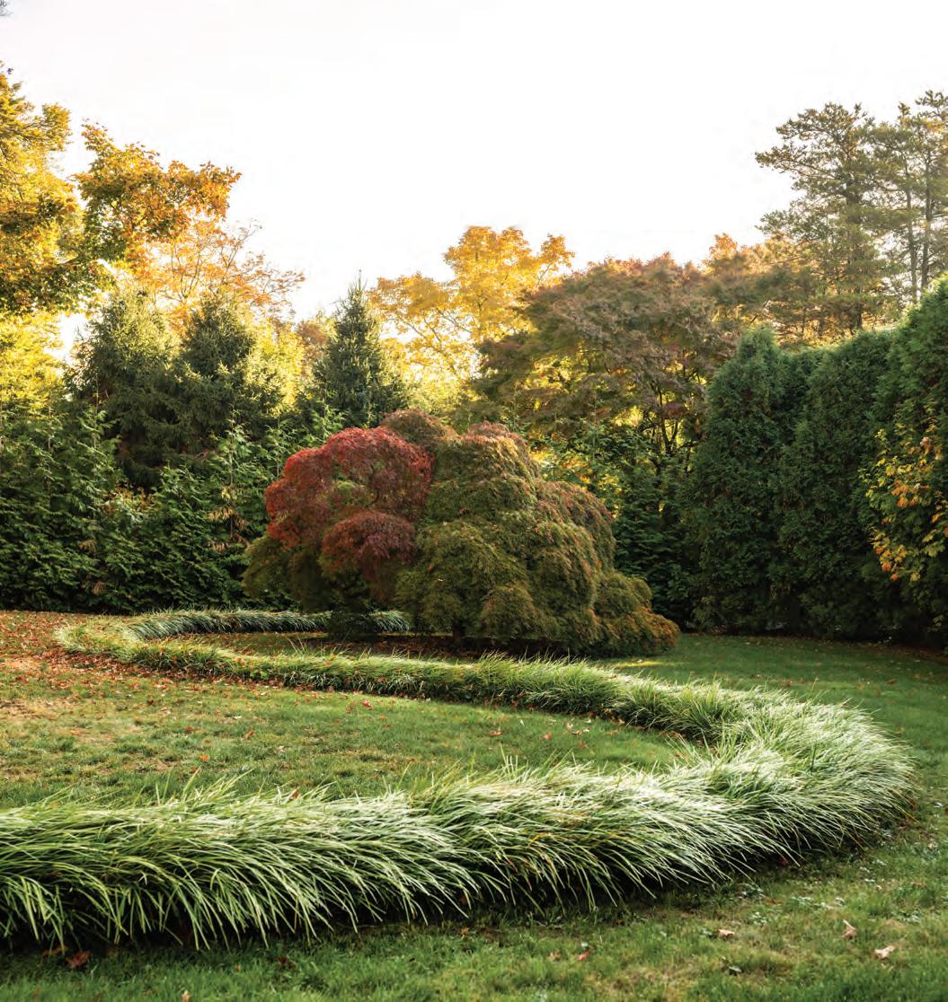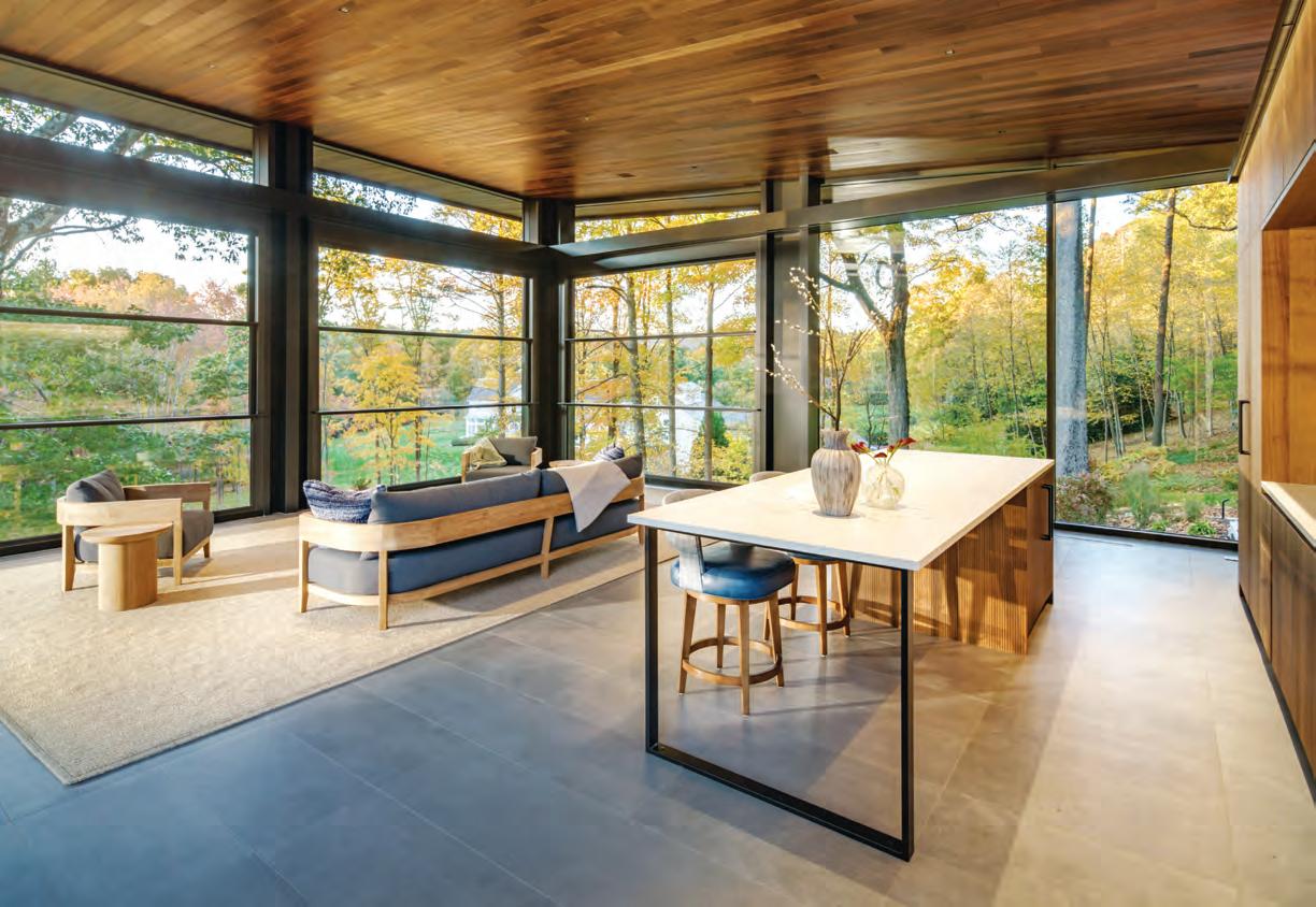 What better way to welcome the season than with the Greenwich home on page 45, where a thoughtfully revitalized landscape preserves a majestic stand of old-growth sugar maples. Even better, it was photographed at peak foliage, offering a striking case for landscape design that evolves over time with year-round appeal. A modern residence in North Haven offers another ode to autumn— it hovers gracefully among the trees, with walls of glass that both frame and dissolve into the brilliant colors of the hillside. And much like layering a perfect fa ll wardrobe, the issue’s interior-focused features are rich in tone and pair deep blues, velvety greens, and dusky purples with reclaimed materials and natural textures. The result is a warming embrace of fall’s cozy elegance.