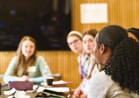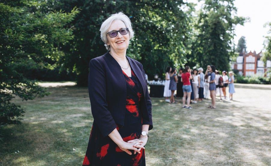 For International Women’s Day , Newnham students organised a variety of events supporting four charities: Becky’s Button, Cambridge Women’s Aid, Victory Afghanistan and Women for Women International. As well as a charity ball (see p. 42), there was a joint JCR/MCR High Tea and a speaker event with Nicola Beauman (NC 1963), founder of Persephone Books; Jane Houng (NC 1977), activist and founder of Becky’s Button, a global movement dedicated to empower women, raise awareness of sexual harassment and advocating for women’s safety; and Ashley Moffett OBE (NC 1967), Emeritus Professor of Reproductive Immunology at the University of Cambridge.