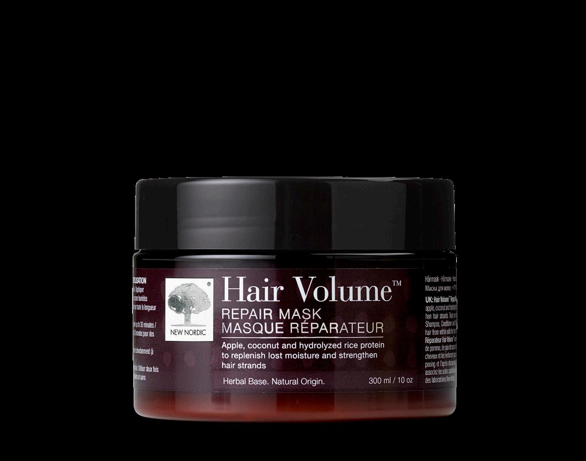 Hair Volume™ Repair Mask er utviklet for hår som trenger styrke, fuktighet og glans. Masken inneholder eple, kokos og hydrolysert risprotein, som bidrar til å gjenoppbygge hårets fuktighetsbalanse og styrker hårstråene.