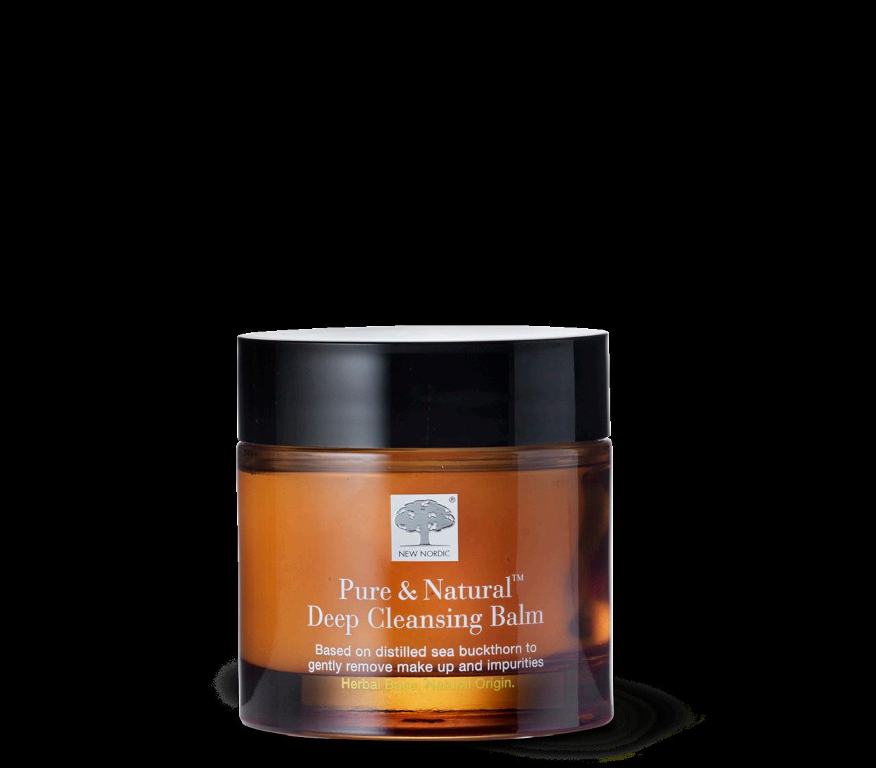 Den PRISVINNENDE Pure & Natural™ Deep Cleansing Balm er en luksuriøs og tykk krem, som forsiktig fjerner sminke og urenheter. Den endrer seg raskt fra olje til melk når den kommer i kontakt med vann, og etterlater huden ren og frisk. Den er basert på destillert tindved og astaxantin samt andre utrolige urteingredienser.