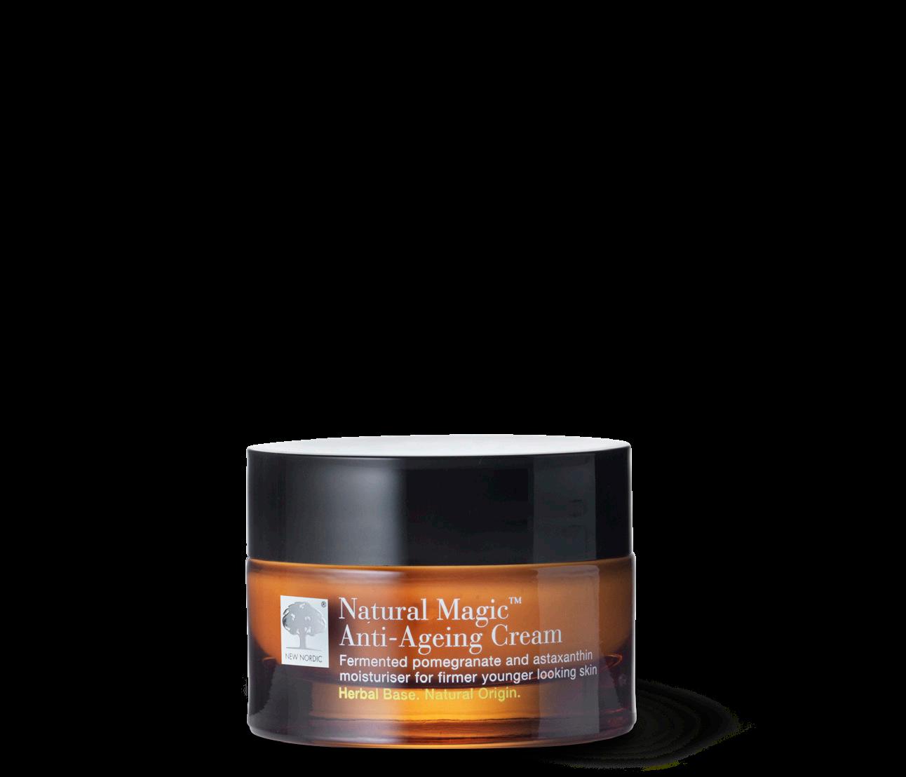 Natural Magic™ Anti-Ageing Cream har VUNNET FLERE PRISER. Den er rik på magiske ingredienser, som fermentert granateple og astaxantin, som bidrar til en fastere og mer ungdommelig hud. Den inneholder også tindved, aprikos, solsikke og flere andre utrolig virkningsfulle ingredienser. Denne lette fuktighetskremen kan redusere forekomsten av rynker, og etterlater huden fastere og glattere.