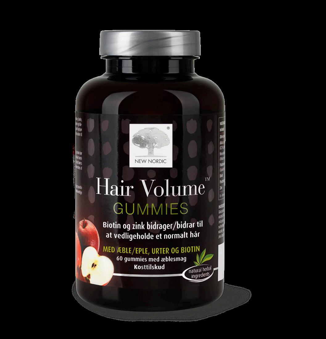Den PRISVINNENDE Hair Volume™-tabletten ble lansert i 2011, og har siden det vunnet mange prestisjetunge priser over hele verden. Hair Volume™ er en klinisk dokumentert hårtablett, som gir synlig tykkere, vakrere og mer glansfullt hår. Hair Volume™ er basert på epleekstrakt i kombinasjon med hirse, kjerringrokk, aminosyrer, biotin, sink og kobber. Tablettene tilfører næringsstoffer til hodebunnen og hårsekken hvor håret dannes. Innholdet av sink og biotin hjelper med å opprettholde normalt hår og en normal hud. Sink bidrar også til å vedlikeholde normale negler. Kobber bidrar til en normal pigmentering av håret.
