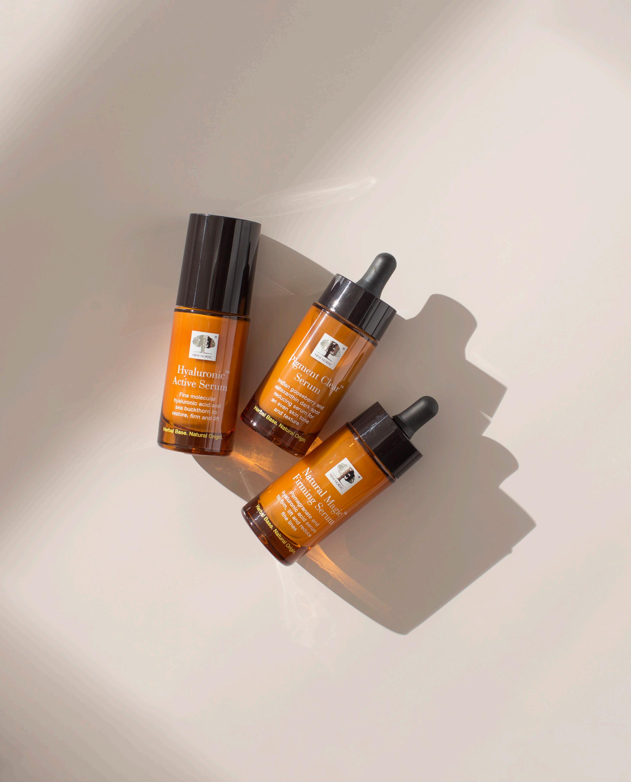 Hud- og hårpleieproduktene fra New Nordic har en umiddelbar kosmetisk effekt, som gir et yngre og vakrere utseende. De jobber i synergi med skjønnhetstilskuddene for best mulige resultater.