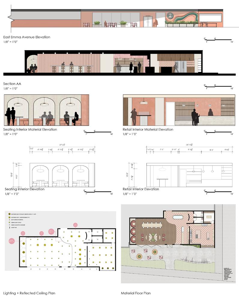 During this advanced design studio, we examined how to increase the visibility of minority populations and the sustainability of the food waste industry in Springdale, Arkansas. Race and ethnicity are becoming increasingly diverse in NWA, in particular Springdale recorded the highest diversity score and has the highest Hispanic and Asian population rates. Walton Family Foundation has announced the “Market Center of the Ozarks” project in Springdale, a new food hub consisting of food processing, commercial kitchen space, and workspace for food entrepreneurs. Designed by patterhn ives llc, it is scheduled for completion by 2024.