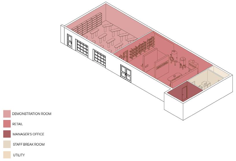 products. Using mango seed extract, the other team developed a cosmetic brand. As a result of developing a business plan, each team designed a space for their business.