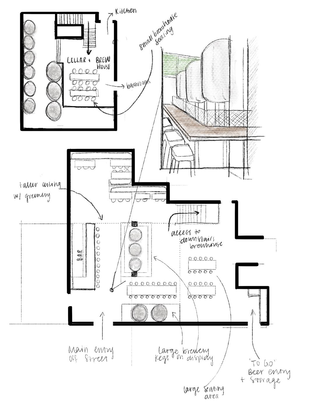 By utilizing TWO sites, we are able to divide our program between the main restaurant and a touring venue that holds our brewhouse. Both sites are located within walking distance from each other.