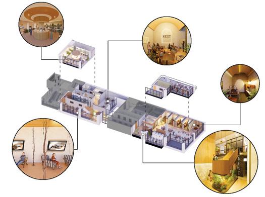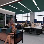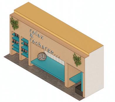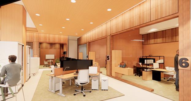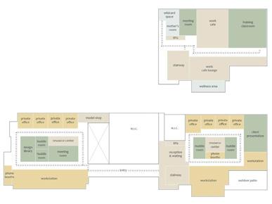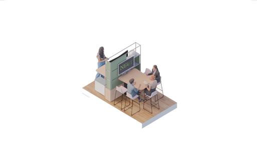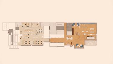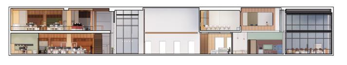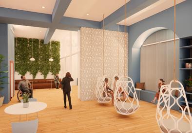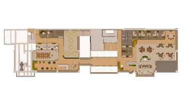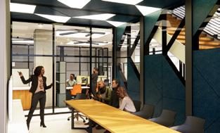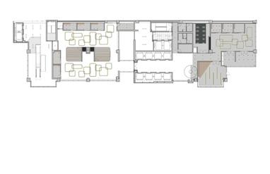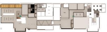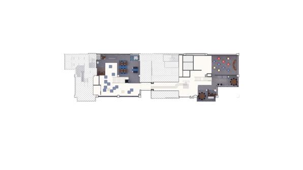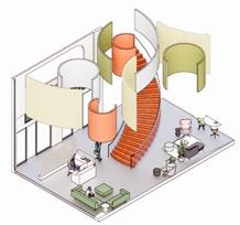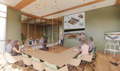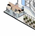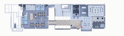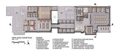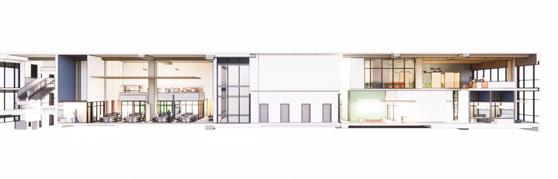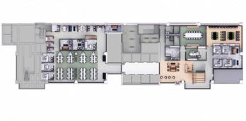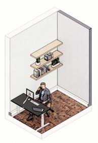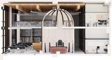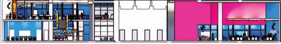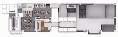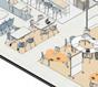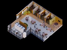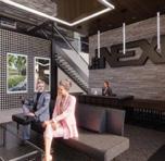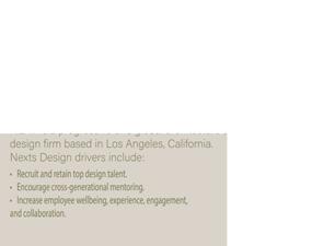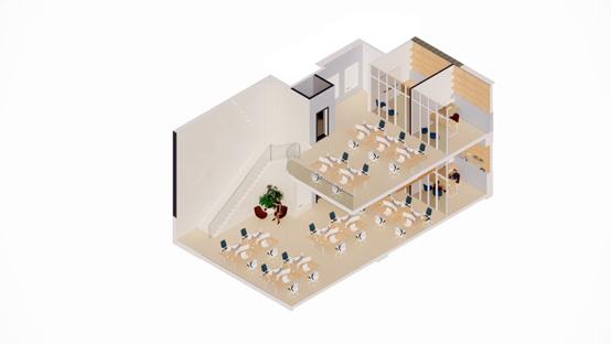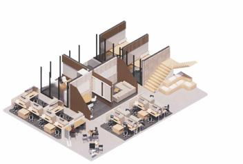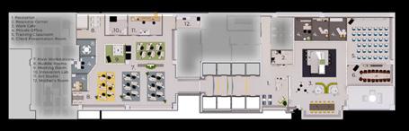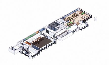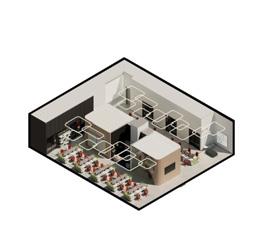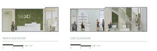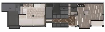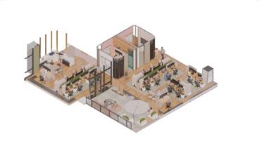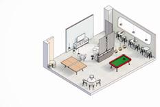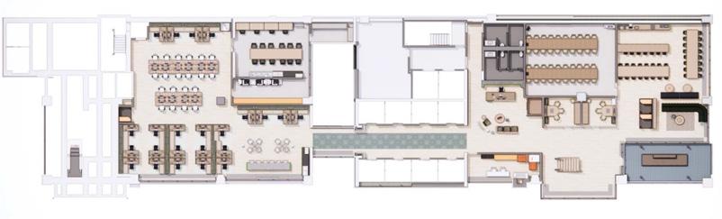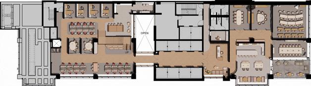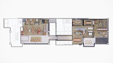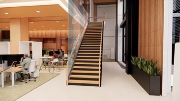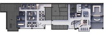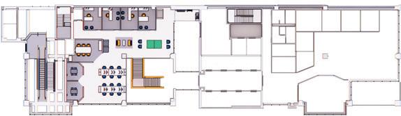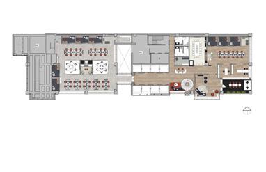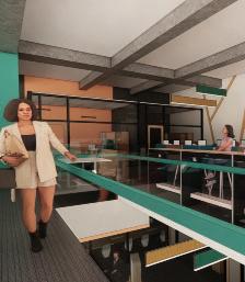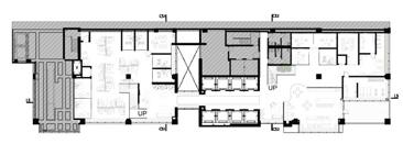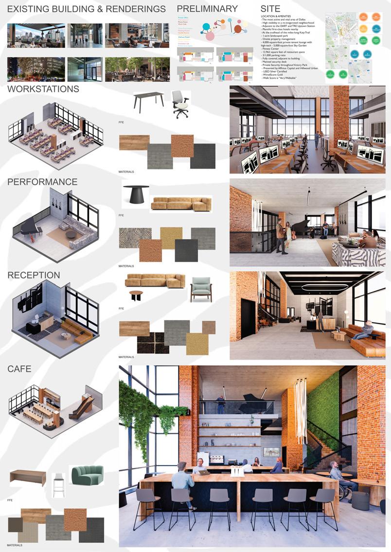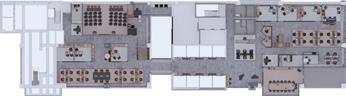 The concept of Thrive is active. Productivity in a design rm is crucial for success. NEXT has strong values and goals to expand within this office in the future as well as maintain their current staff and clientele. The design of this office is a large step towards accomplishing those goals. Activness is present throughout the entire office. Every desk is adjustable for a sitting or standing option. There are walking desks on the mezzanine and the wildcard space is a pickleball court.