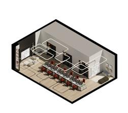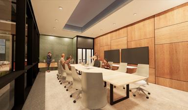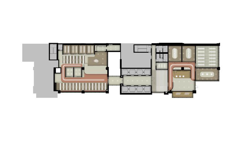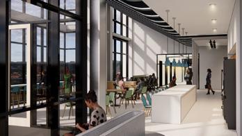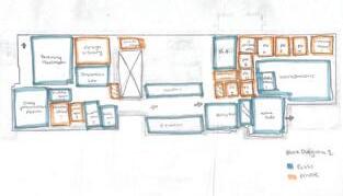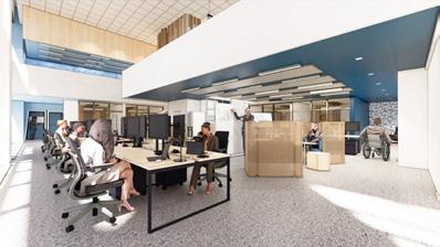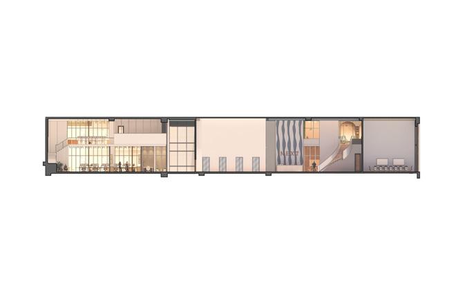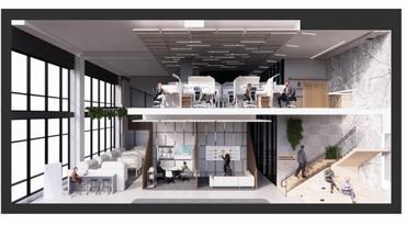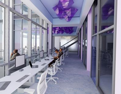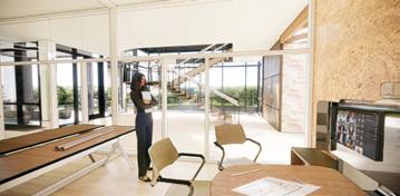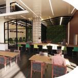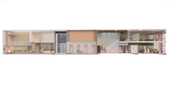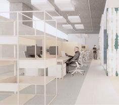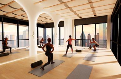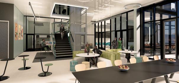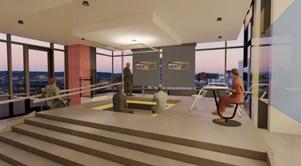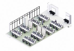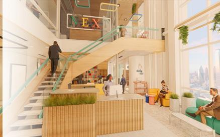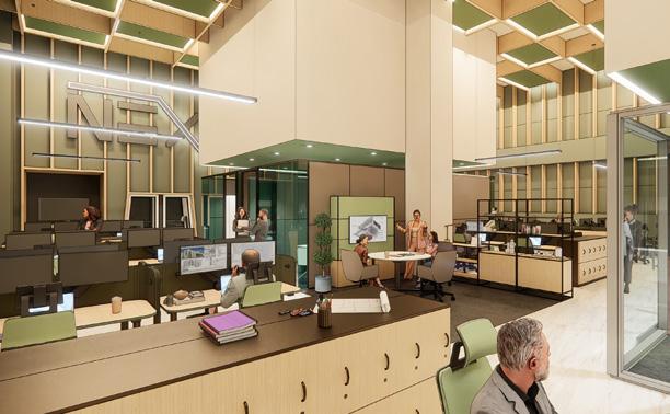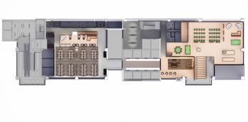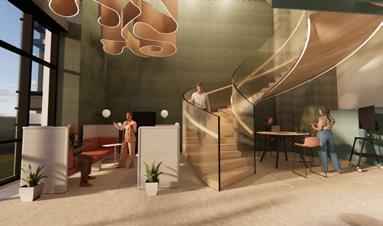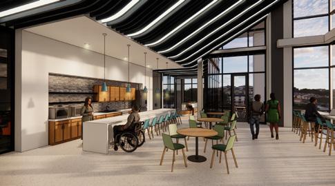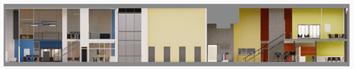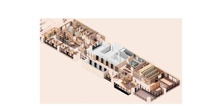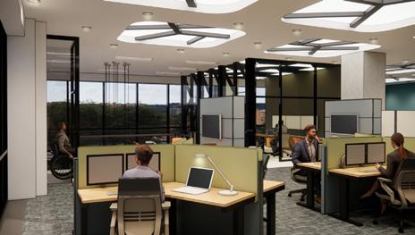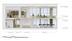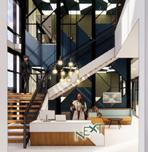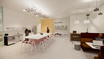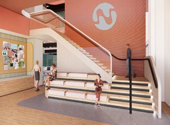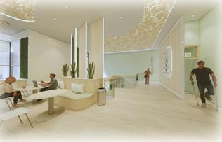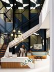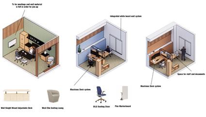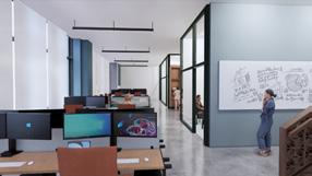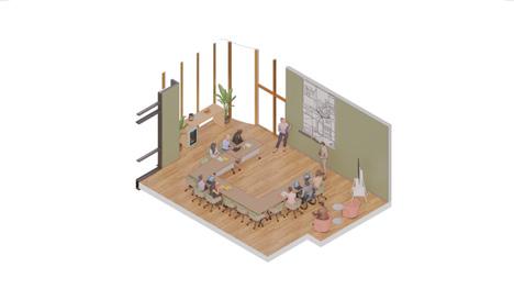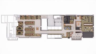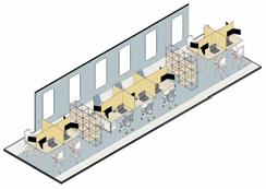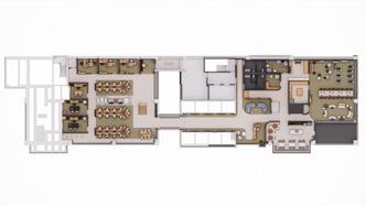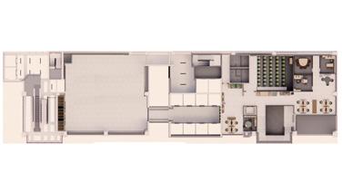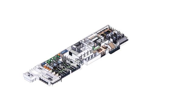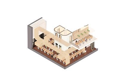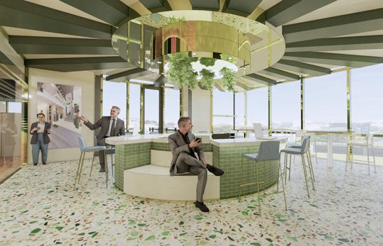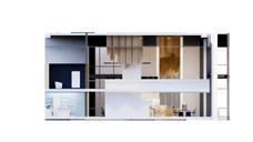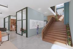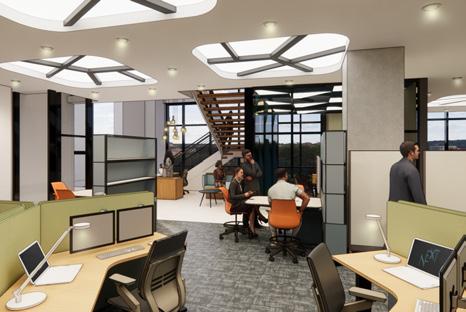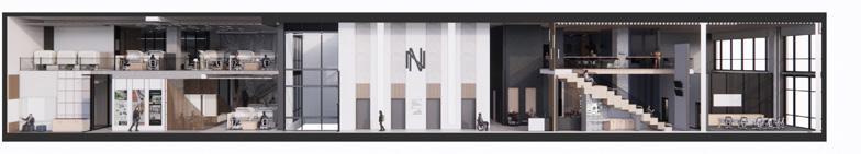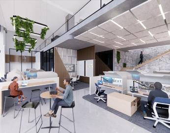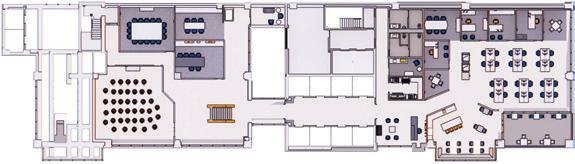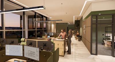The concept of Thrive is active. Productivity in a design rm is crucial for success. NEXT has strong values and goals to expand within this office in the future as well as maintain their current staff and clientele. The design of this office is a large step towards accomplishing those goals. Activness is present throughout the entire office. Every desk is adjustable for a sitting or standing option. There are walking desks on the mezzanine and the wildcard space is a pickleball court.
