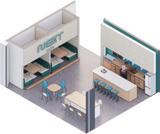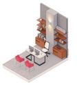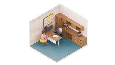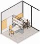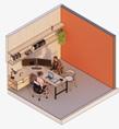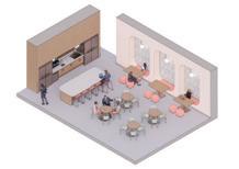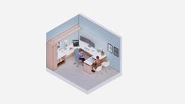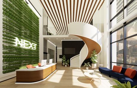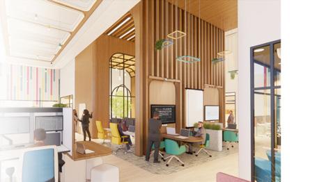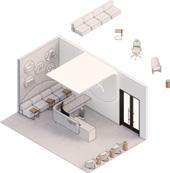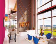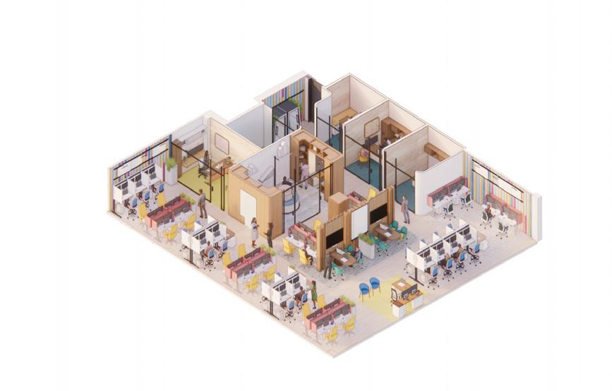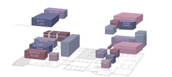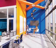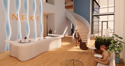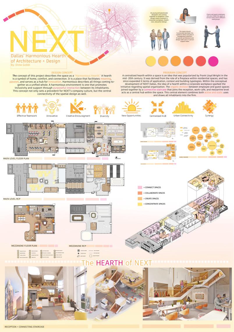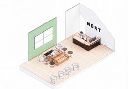 The new NEXT design ofce located in Dallas, Texas will be based around the concept of congruity. I drew inspiration from colorful geometric forms that create high contrast. The design will be in alignment with the word congruity through its overall purpose and functionality, as well as through its aestheic.