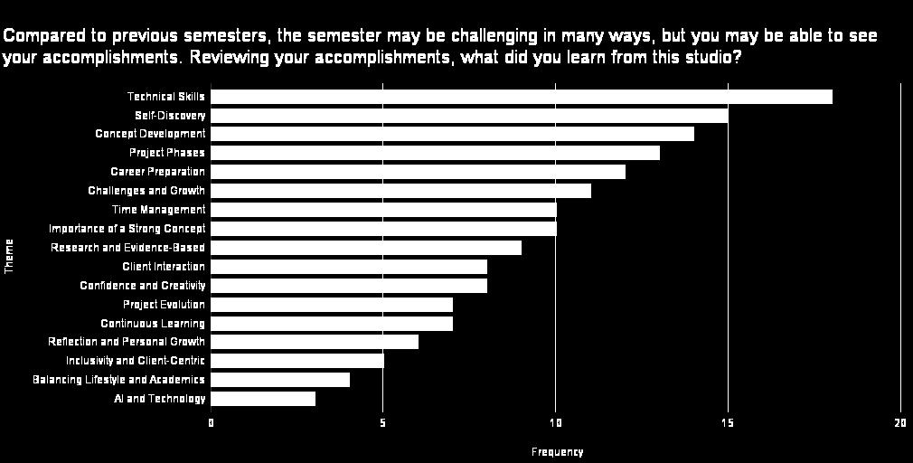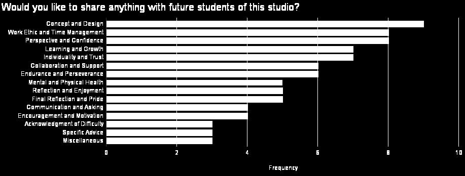 Overall, the survey responses highlight a rich array of experiences, emphasizing the integration of technical skills, personal growth, and the practical aspects of design in a studio setting.