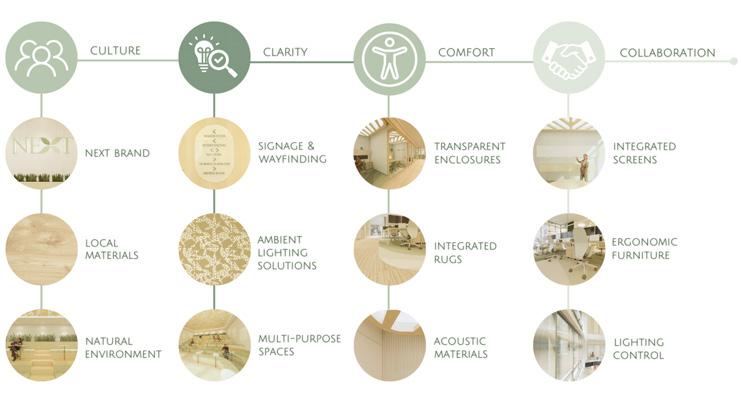 I think a healthy balance between work and life help to support and strengthen a good workplace. A variety of seating and work options that foster community and bring people together as well as mixing in spaces that sprinkle in some fun and purpose!