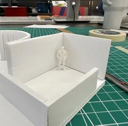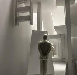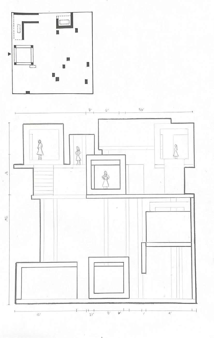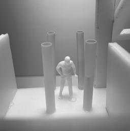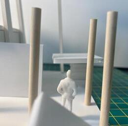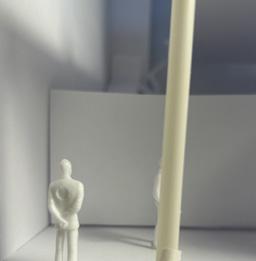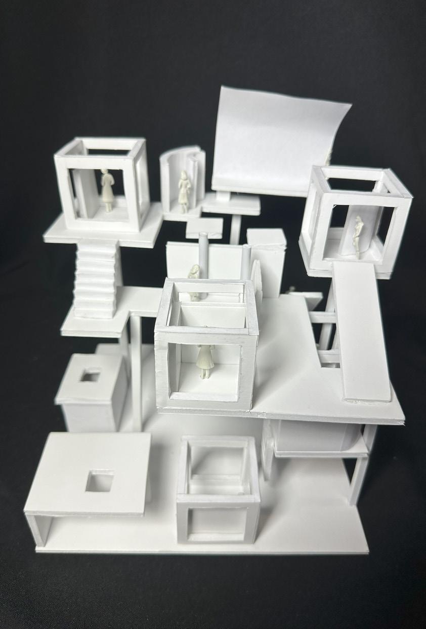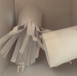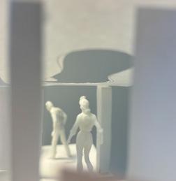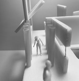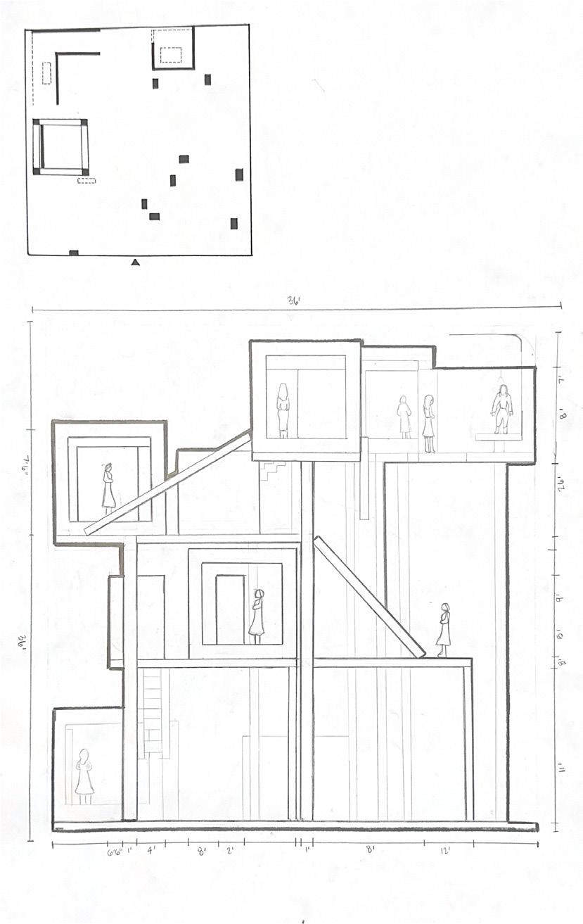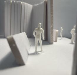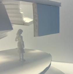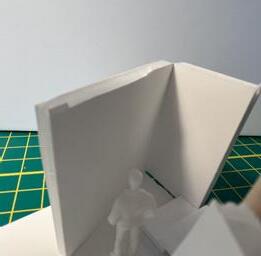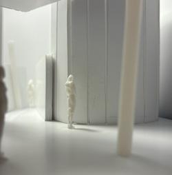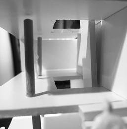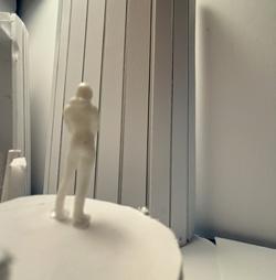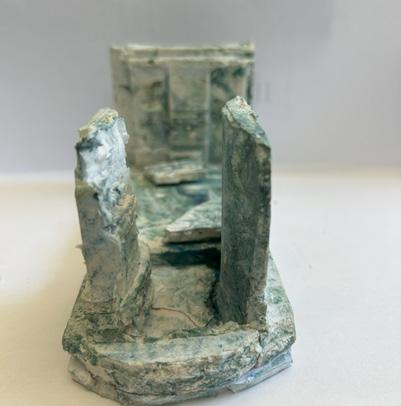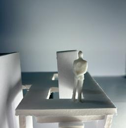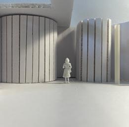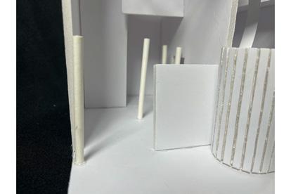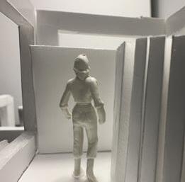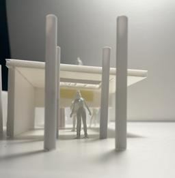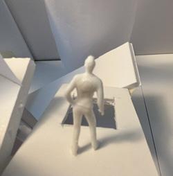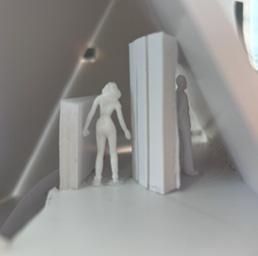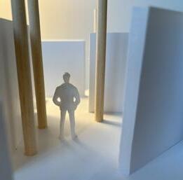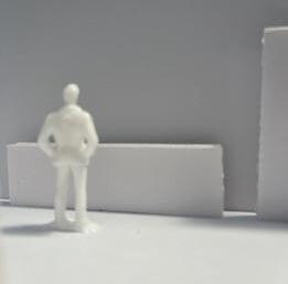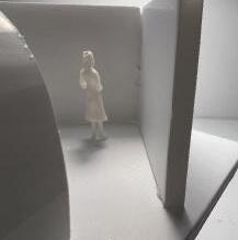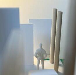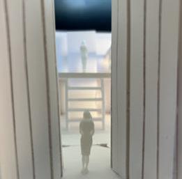 Next is category 21. Although I altered the shape and number of columns to best t the space, it s�ll has the same effect. I decided to make this scene more open by li�ing the ceiling above it. I did this in order to allow viewers to see this part of the display be�er. The image I chose shows four columns widely set. A human gure stands in the middle of the four columns. The image makes me feel scared and claustrophobic due to the columns being placed close together.