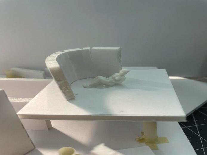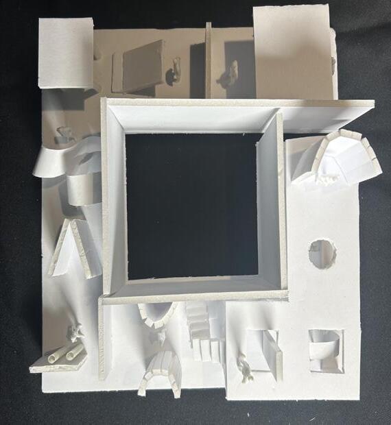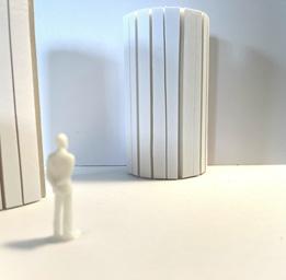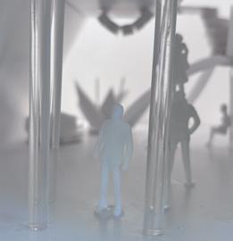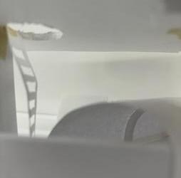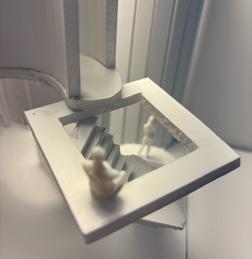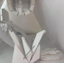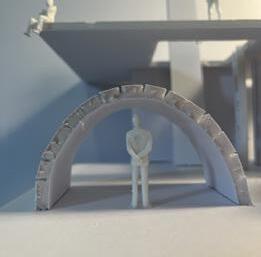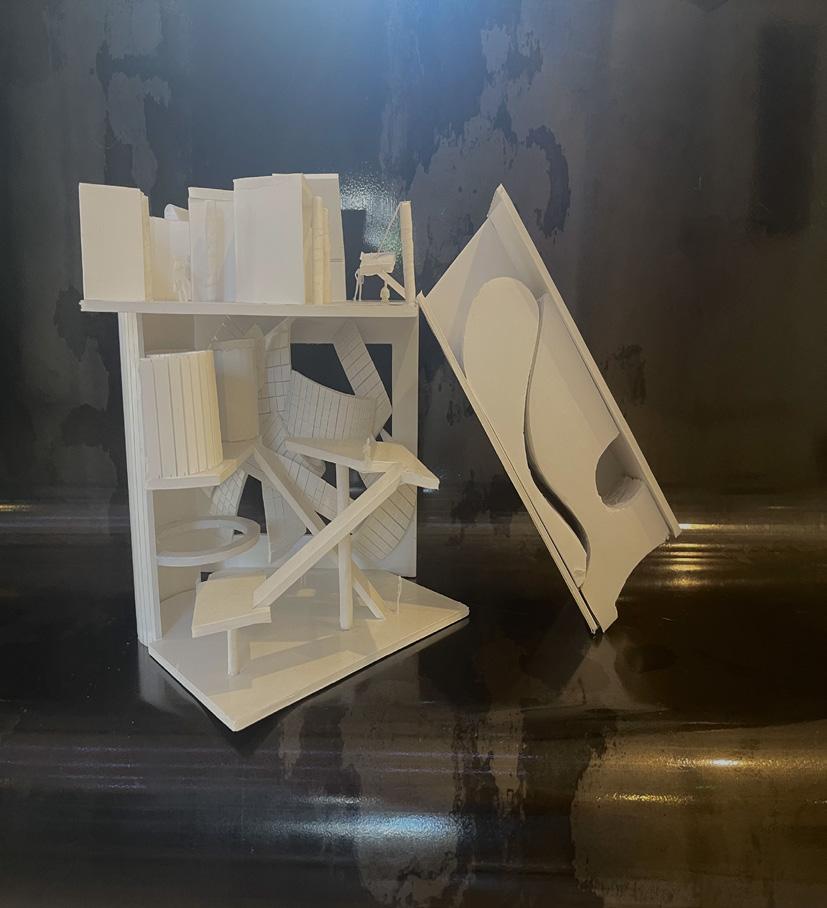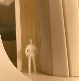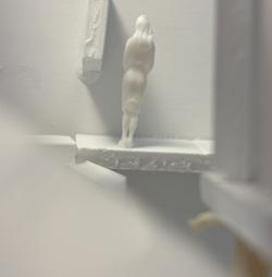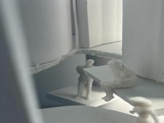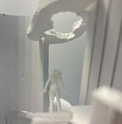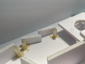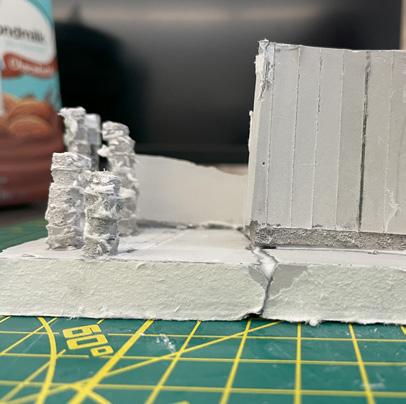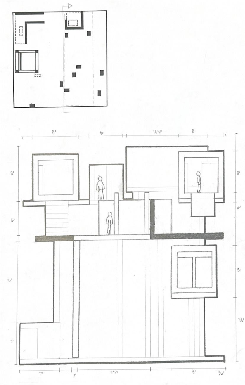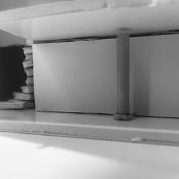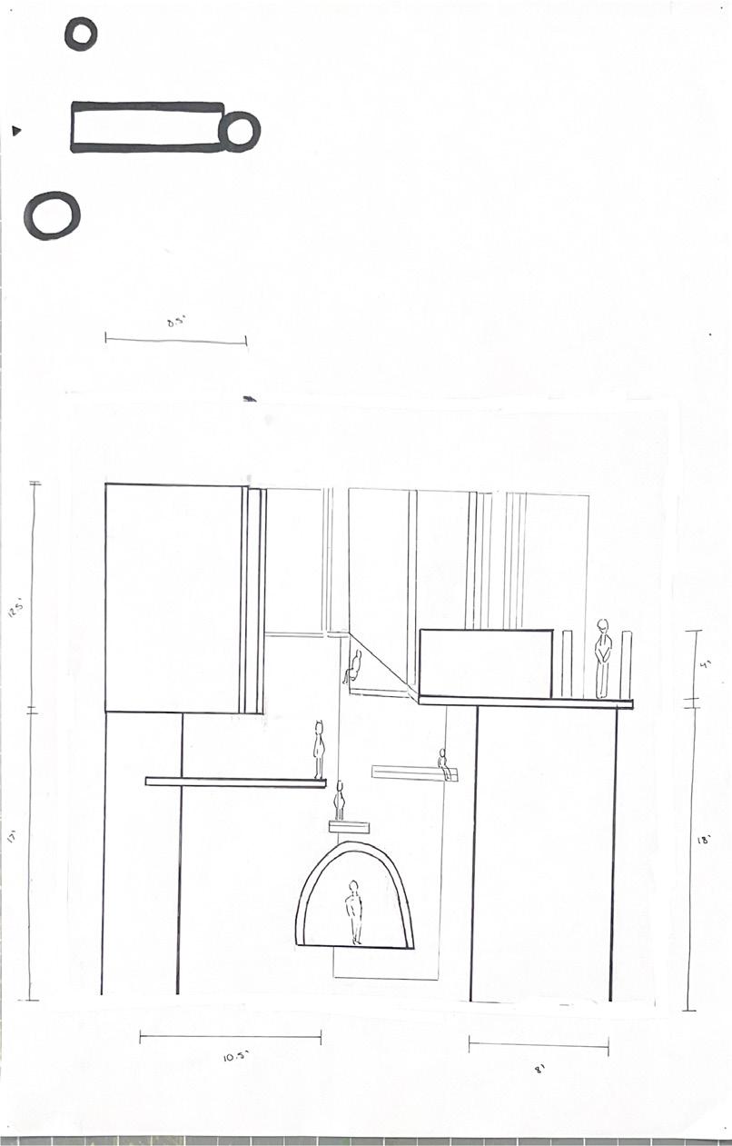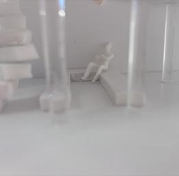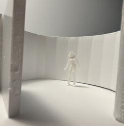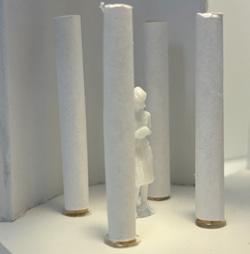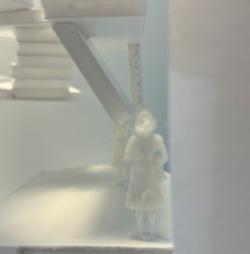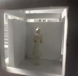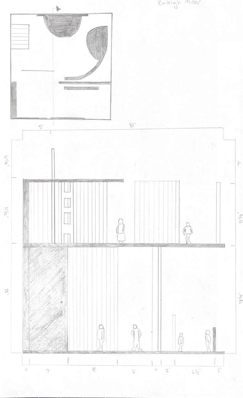 Next is category 21. Although I altered the shape and number of columns to best t the space, it s�ll has the same effect. I decided to make this scene more open by li�ing the ceiling above it. I did this in order to allow viewers to see this part of the display be�er. The image I chose shows four columns widely set. A human gure stands in the middle of the four columns. The image makes me feel scared and claustrophobic due to the columns being placed close together.