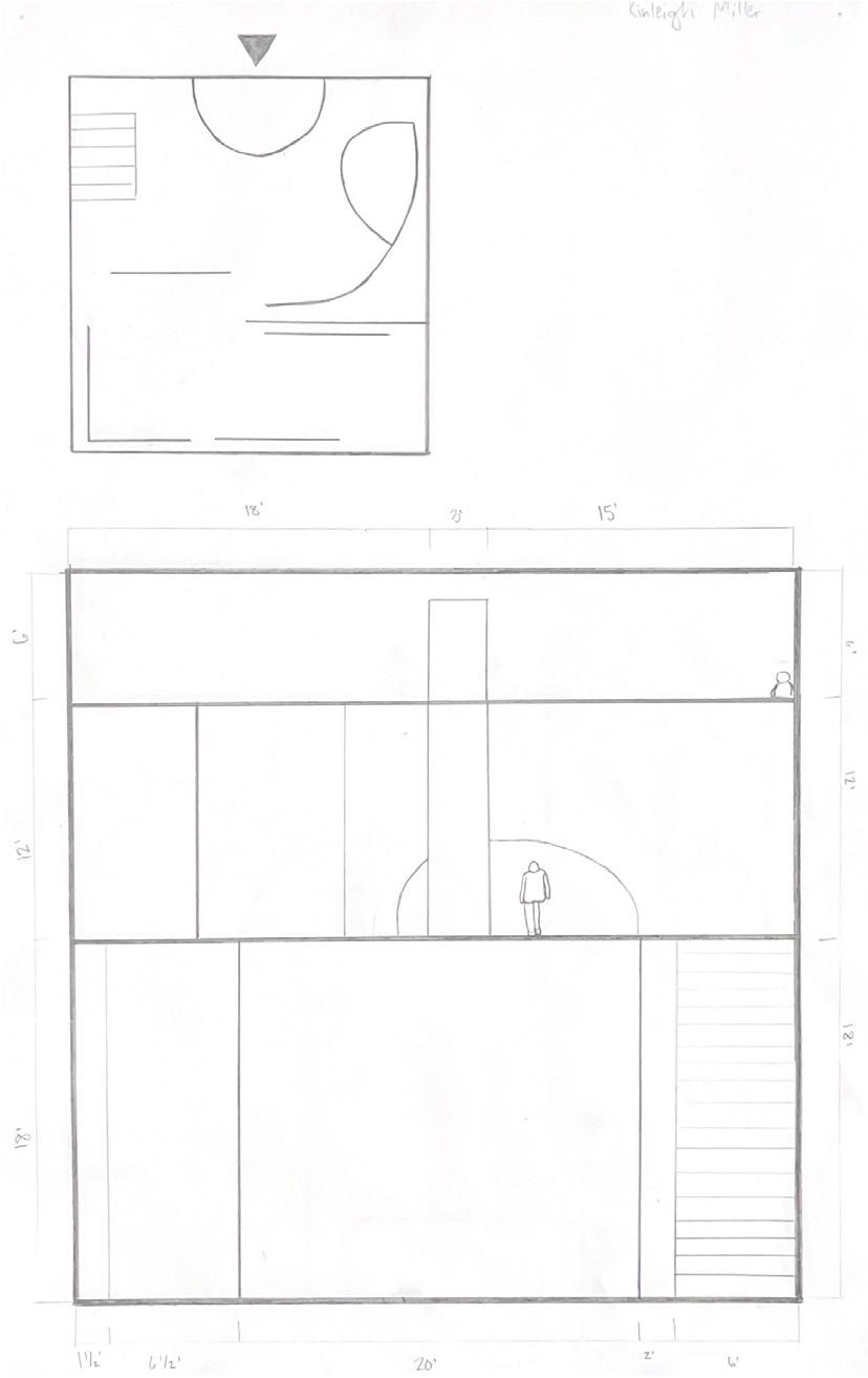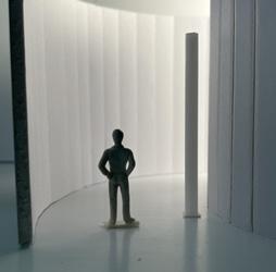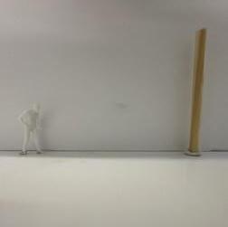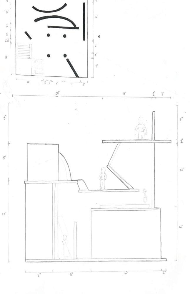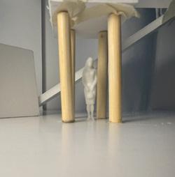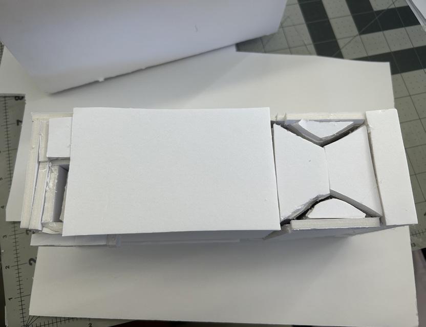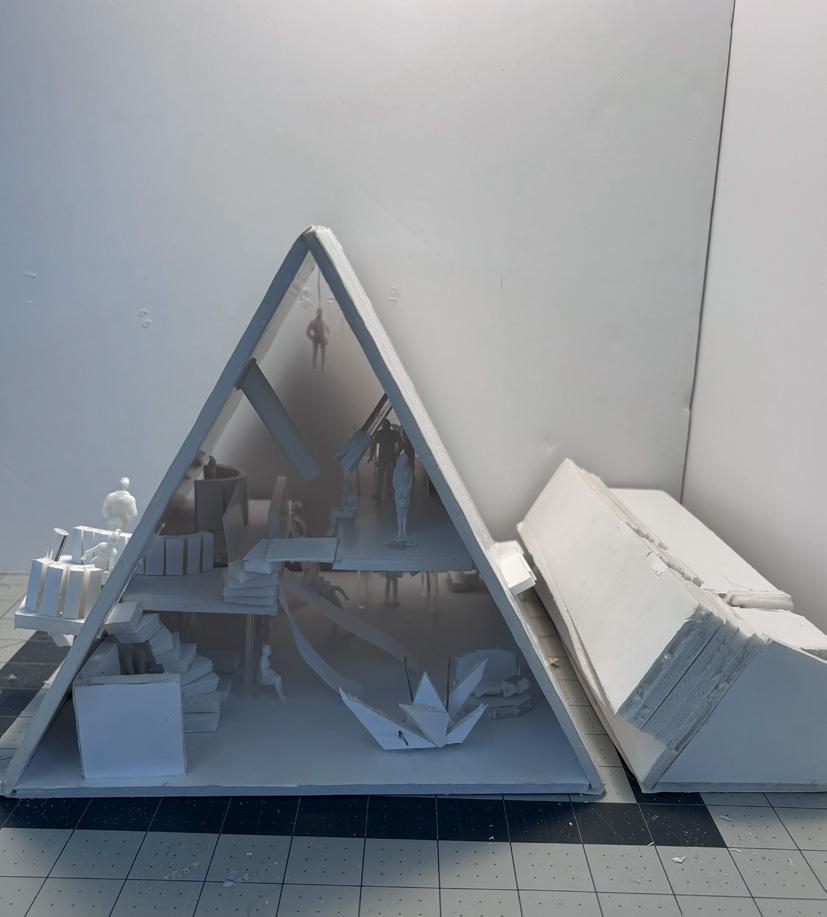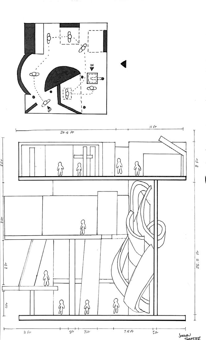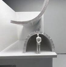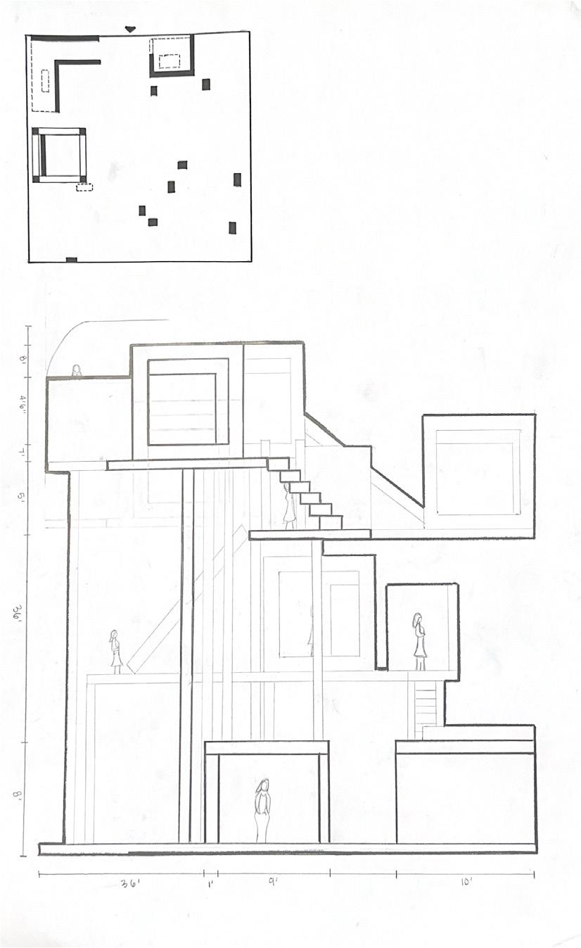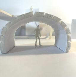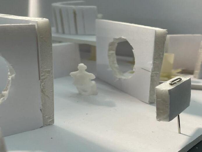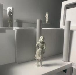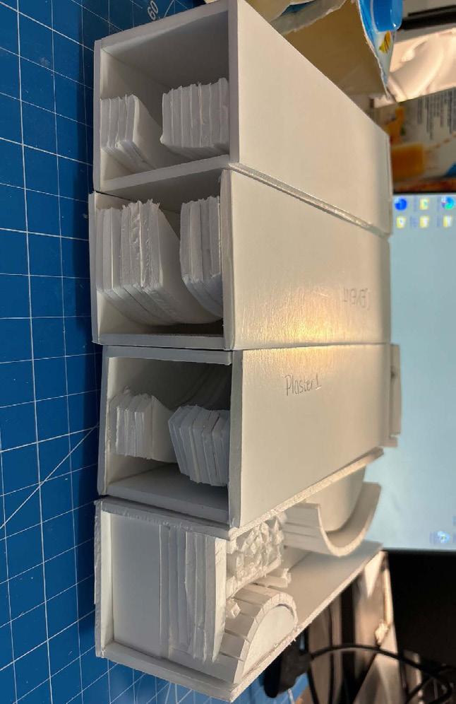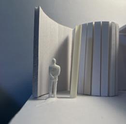 Next is category 21. Although I altered the shape and number of columns to best t the space, it s�ll has the same effect. I decided to make this scene more open by li�ing the ceiling above it. I did this in order to allow viewers to see this part of the display be�er. The image I chose shows four columns widely set. A human gure stands in the middle of the four columns. The image makes me feel scared and claustrophobic due to the columns being placed close together.