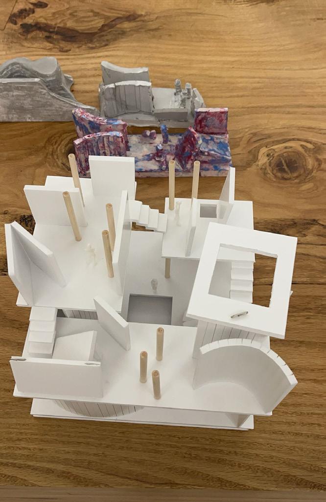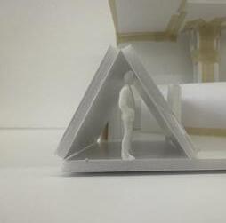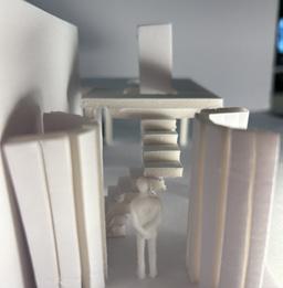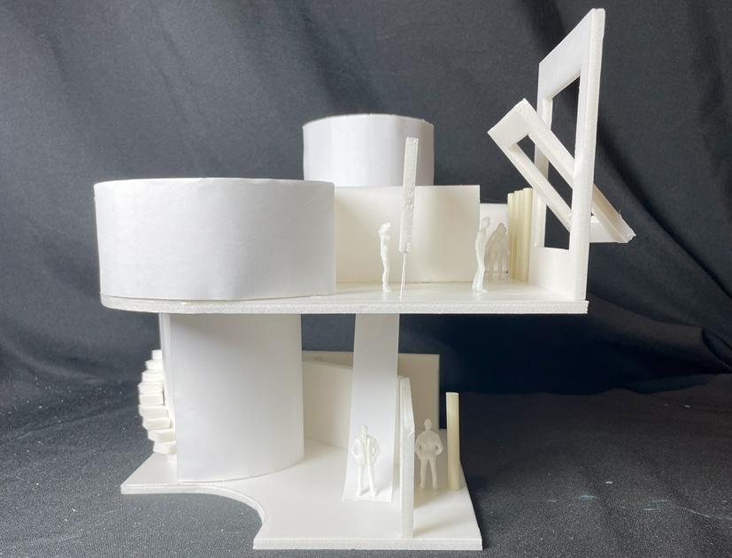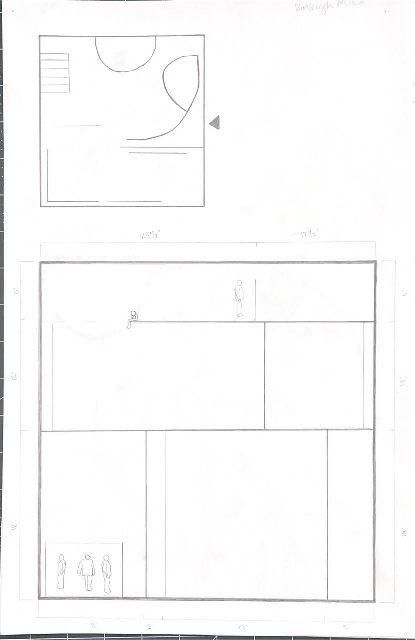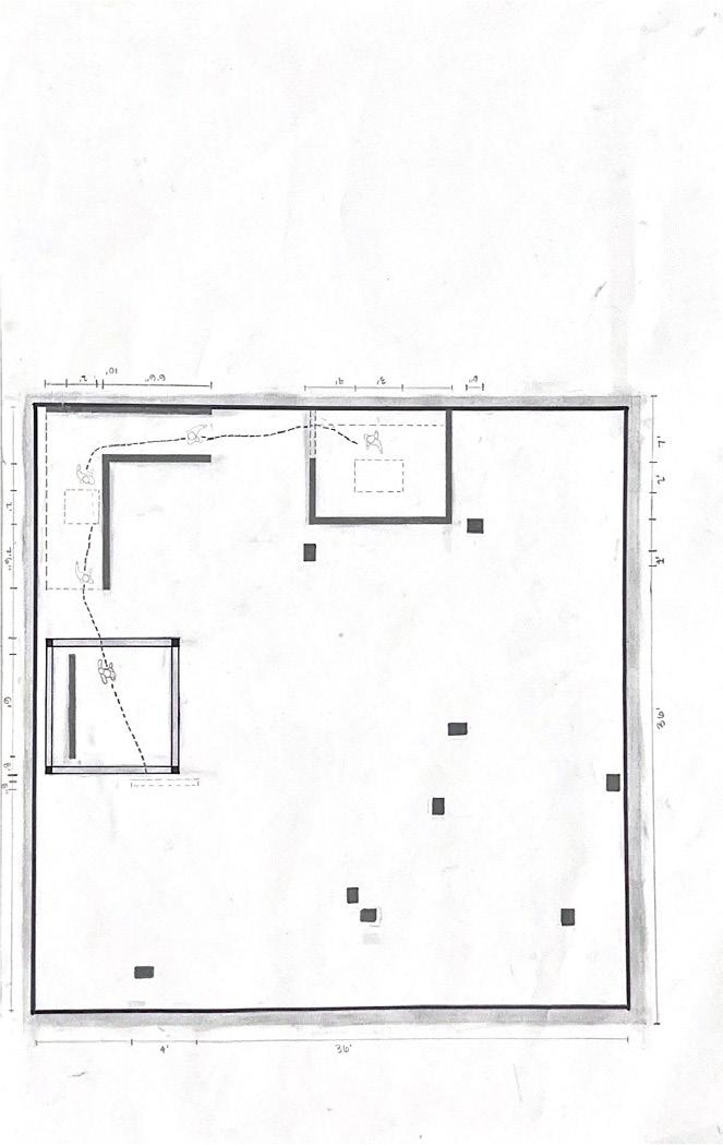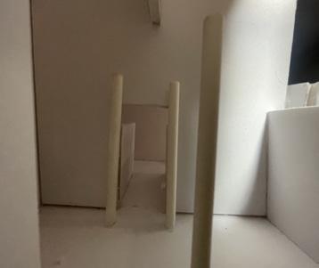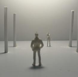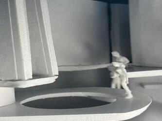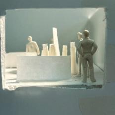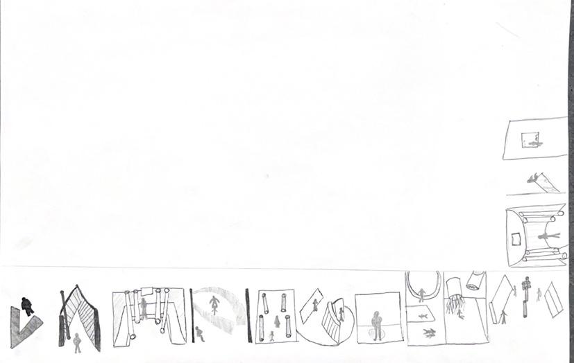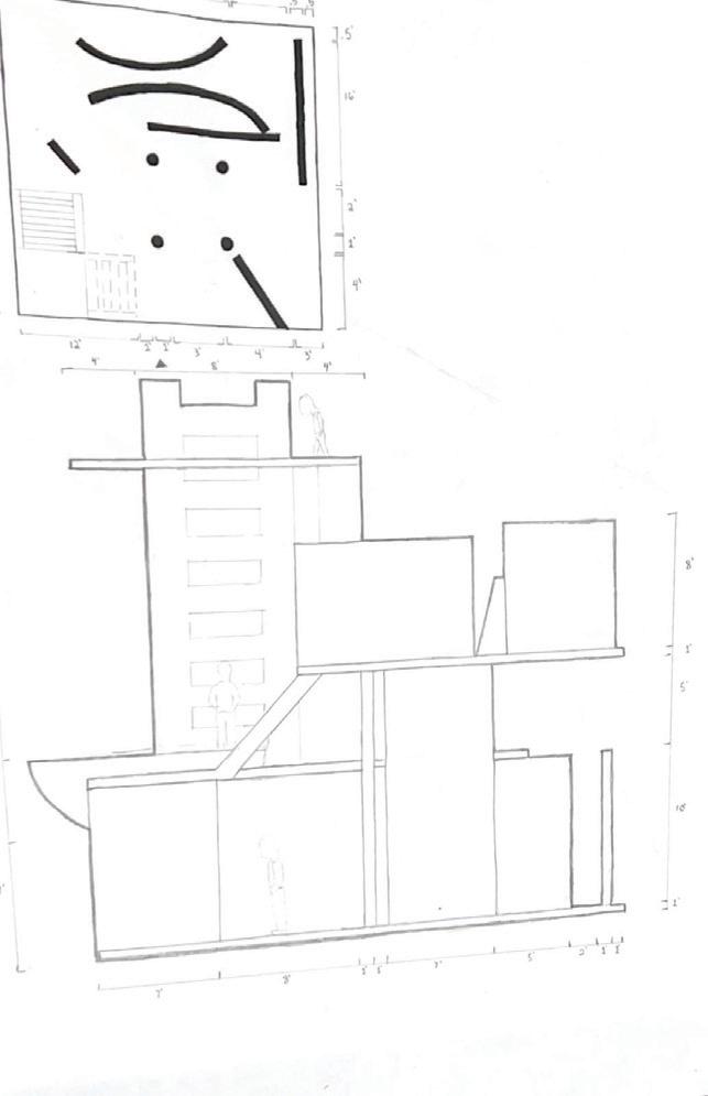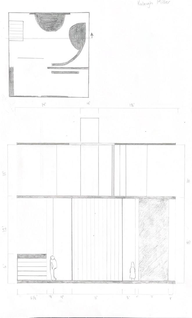 Next is category 21. Although I altered the shape and number of columns to best t the space, it s�ll has the same effect. I decided to make this scene more open by li�ing the ceiling above it. I did this in order to allow viewers to see this part of the display be�er. The image I chose shows four columns widely set. A human gure stands in the middle of the four columns. The image makes me feel scared and claustrophobic due to the columns being placed close together.