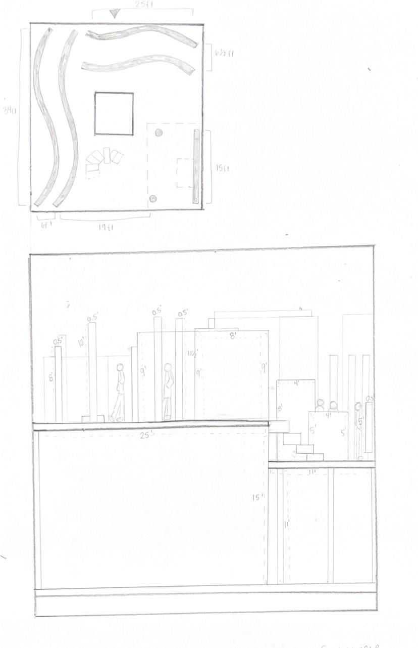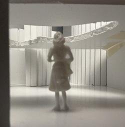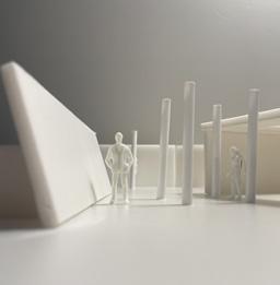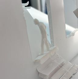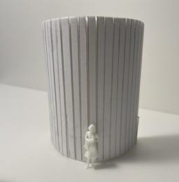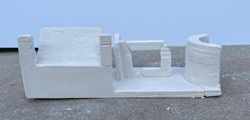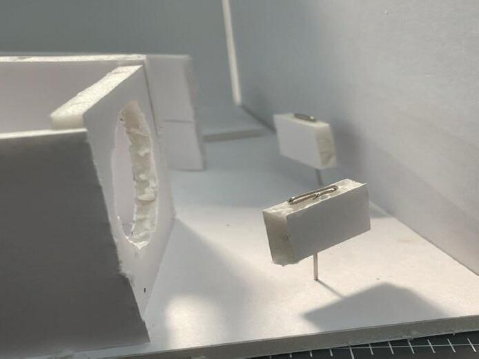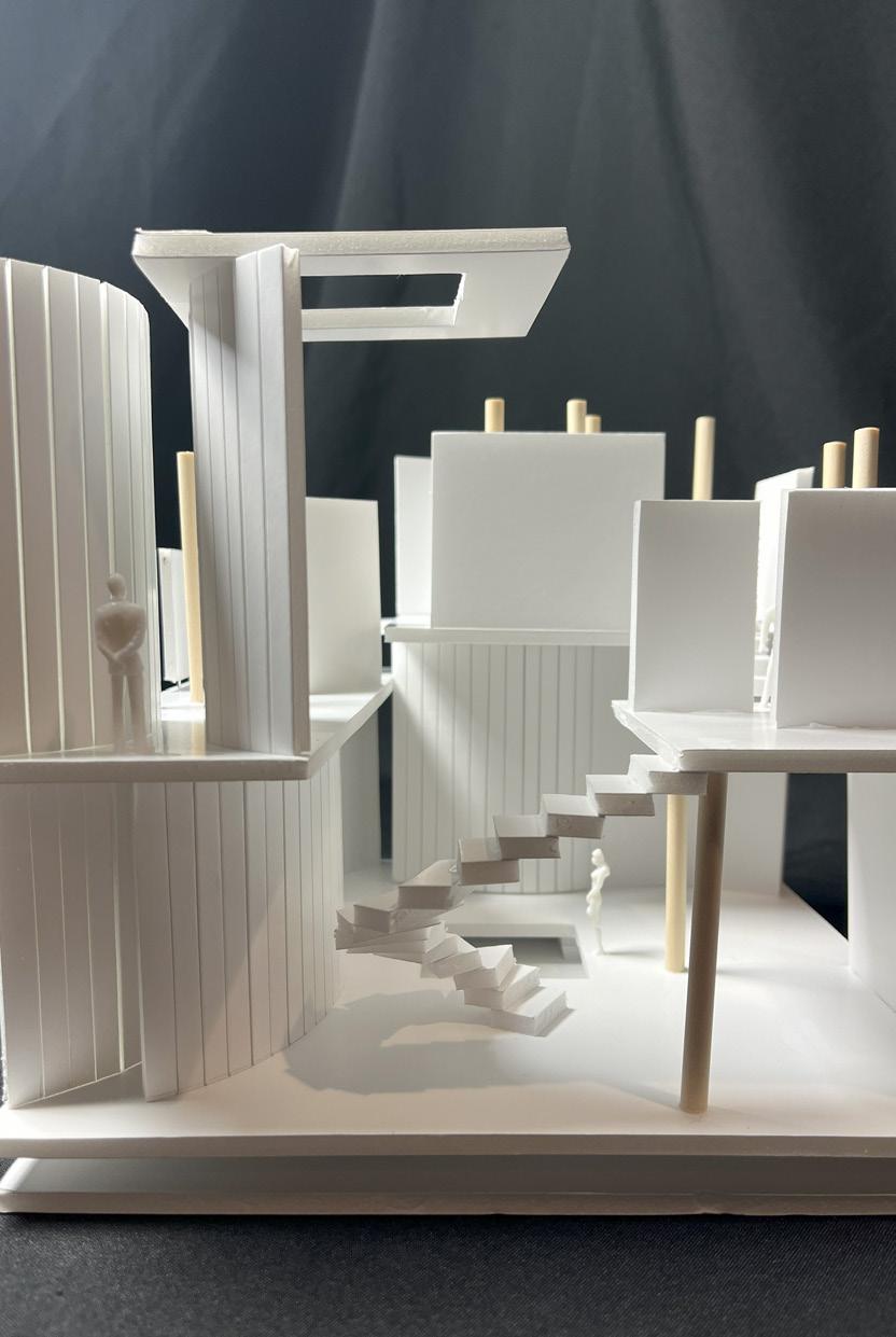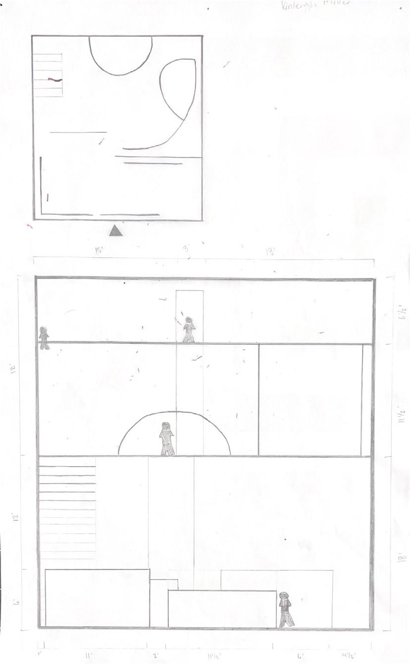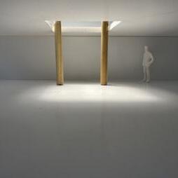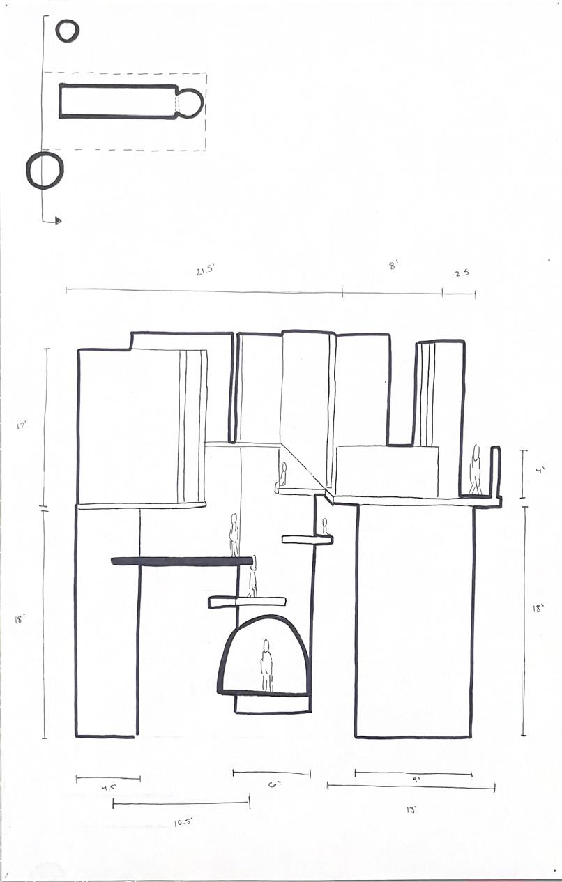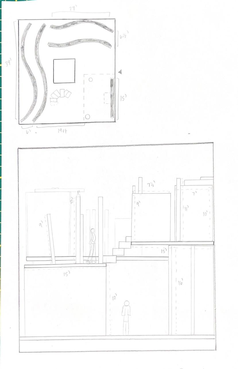 Next is category 21. Although I altered the shape and number of columns to best t the space, it s�ll has the same effect. I decided to make this scene more open by li�ing the ceiling above it. I did this in order to allow viewers to see this part of the display be�er. The image I chose shows four columns widely set. A human gure stands in the middle of the four columns. The image makes me feel scared and claustrophobic due to the columns being placed close together.