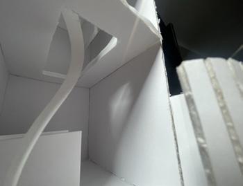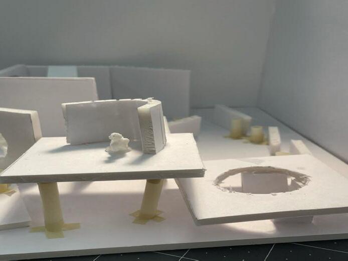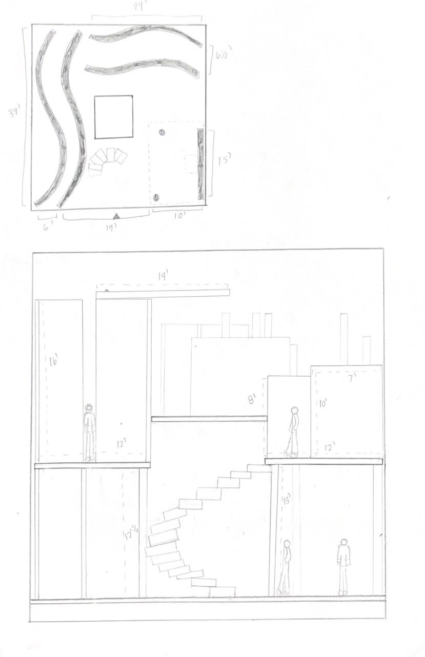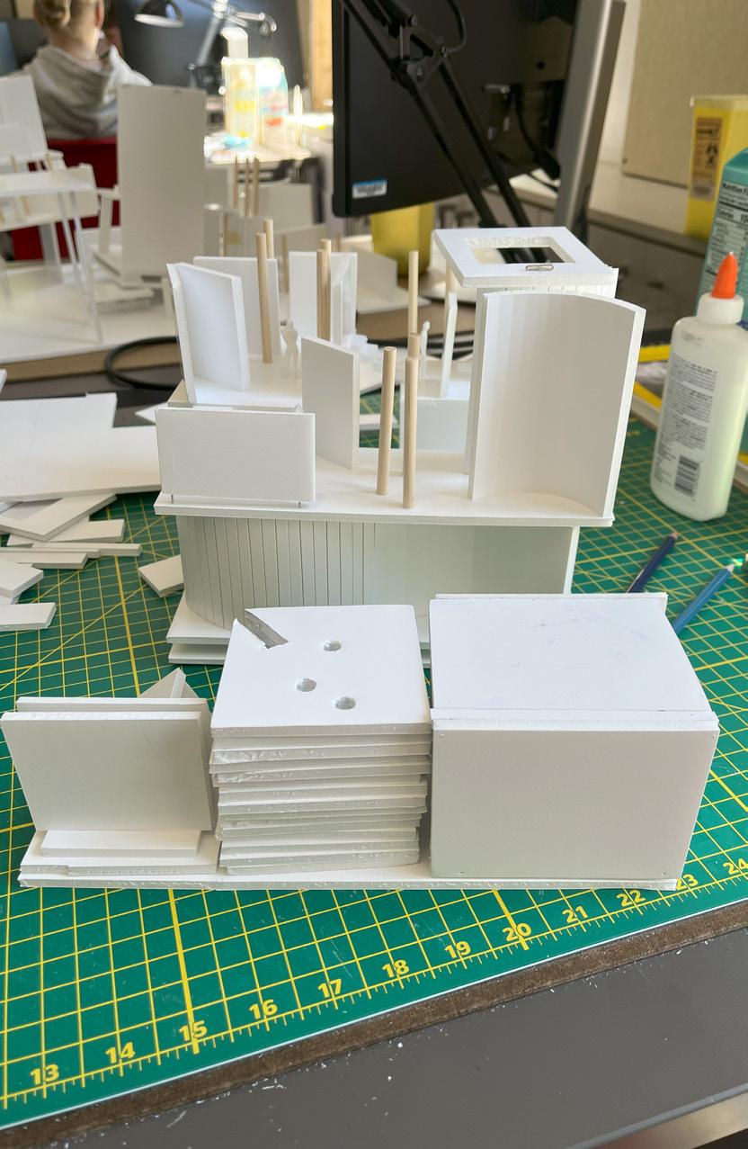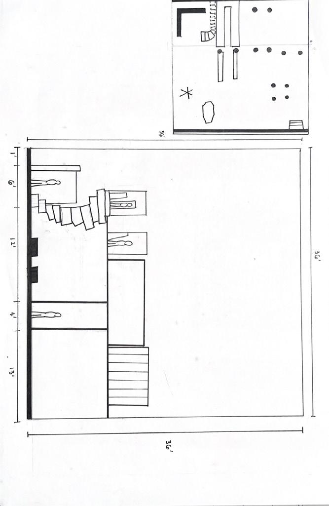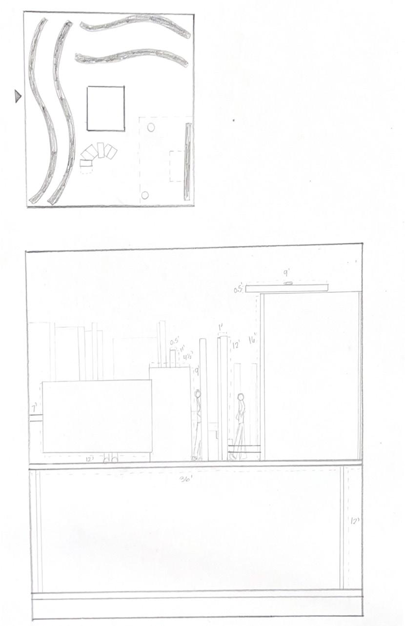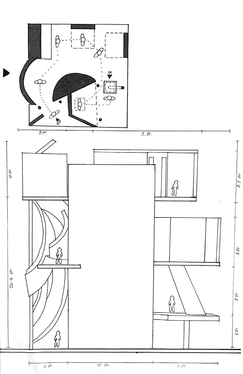 Next is category 21. Although I altered the shape and number of columns to best t the space, it s�ll has the same effect. I decided to make this scene more open by li�ing the ceiling above it. I did this in order to allow viewers to see this part of the display be�er. The image I chose shows four columns widely set. A human gure stands in the middle of the four columns. The image makes me feel scared and claustrophobic due to the columns being placed close together.