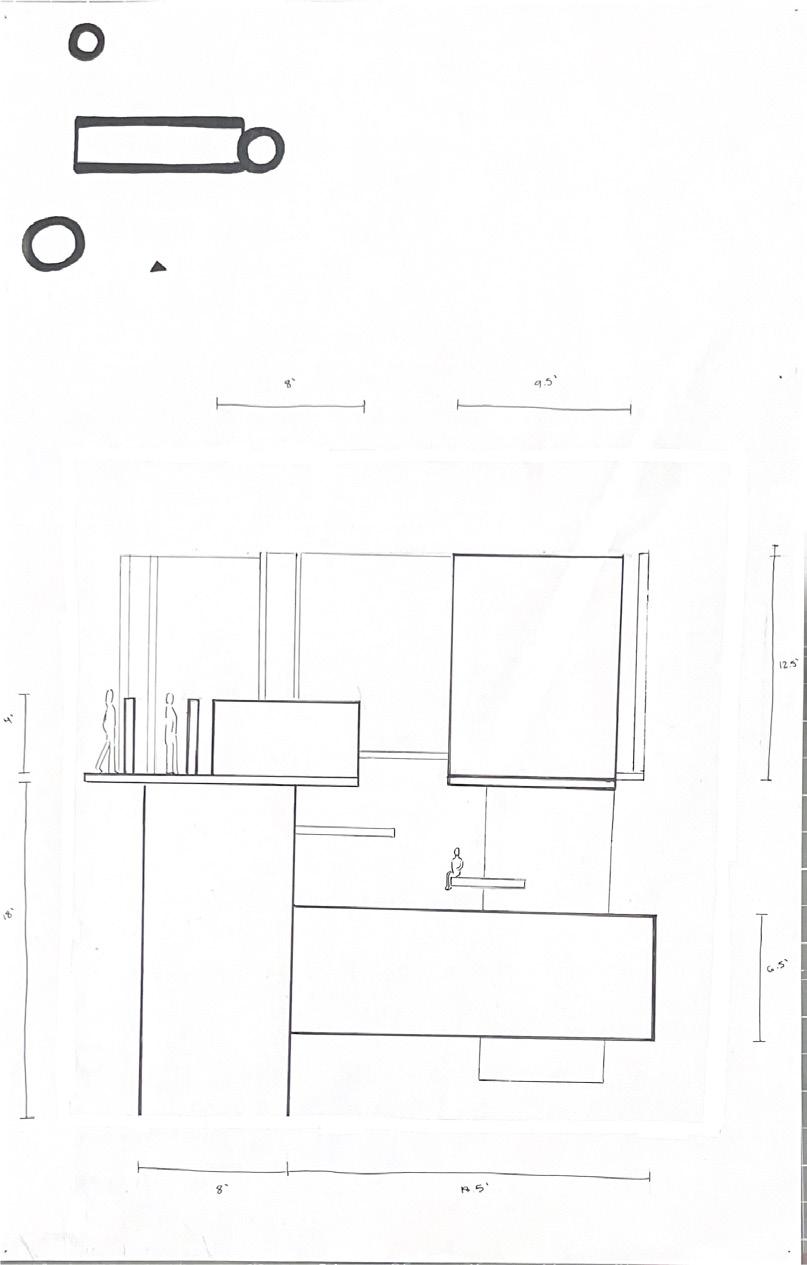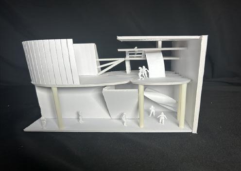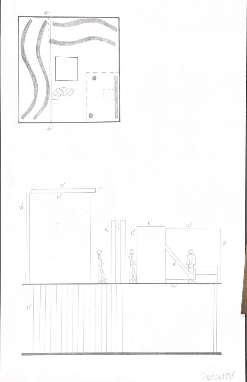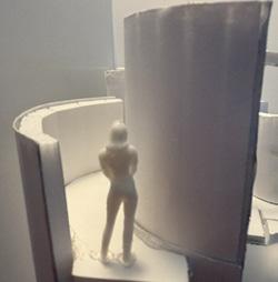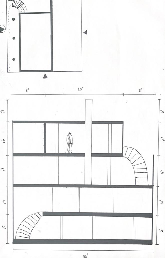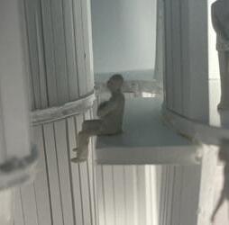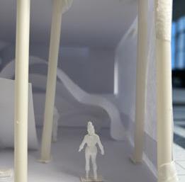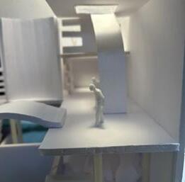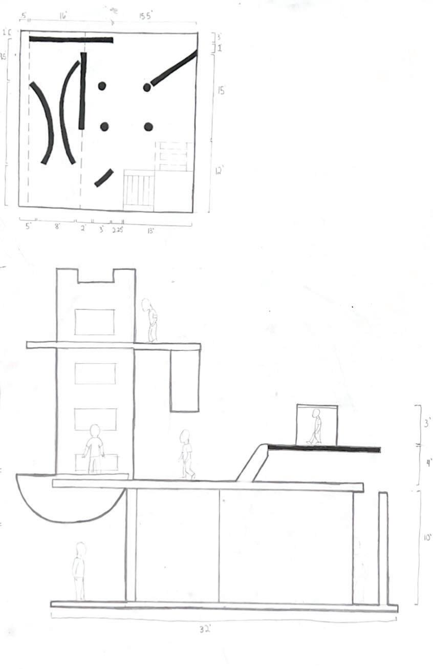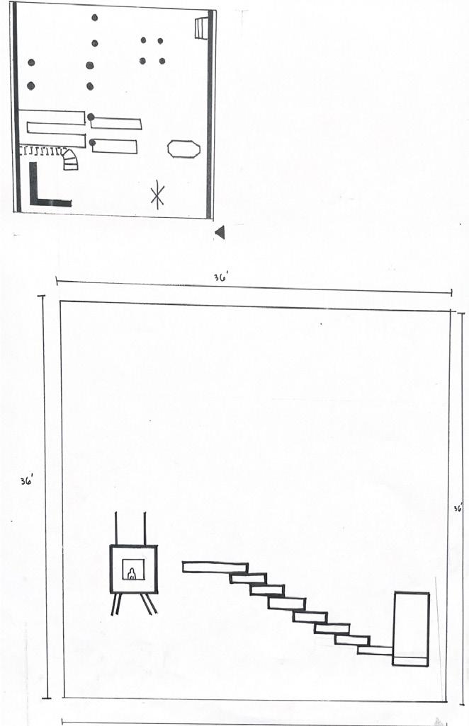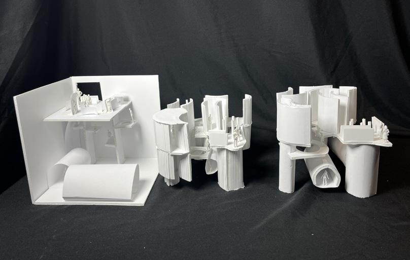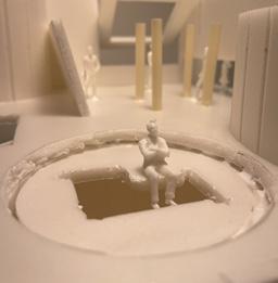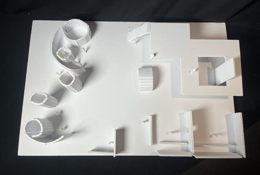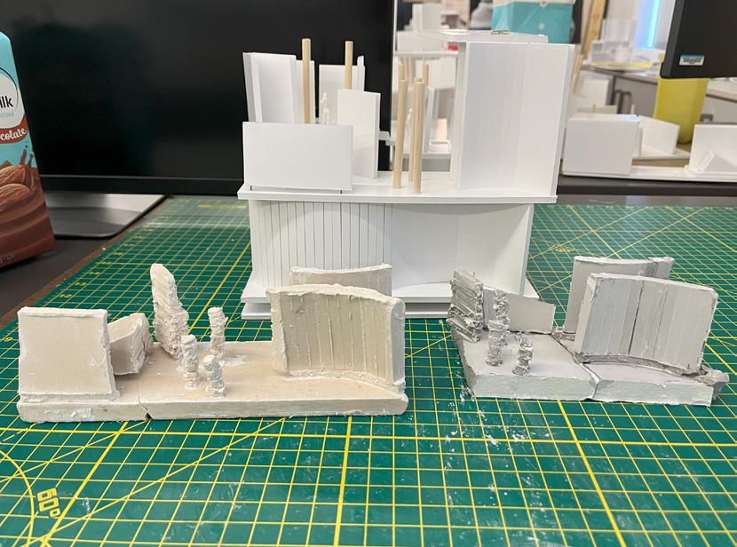 Next is category 21. Although I altered the shape and number of columns to best t the space, it s�ll has the same effect. I decided to make this scene more open by li�ing the ceiling above it. I did this in order to allow viewers to see this part of the display be�er. The image I chose shows four columns widely set. A human gure stands in the middle of the four columns. The image makes me feel scared and claustrophobic due to the columns being placed close together.