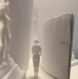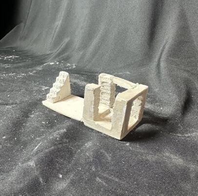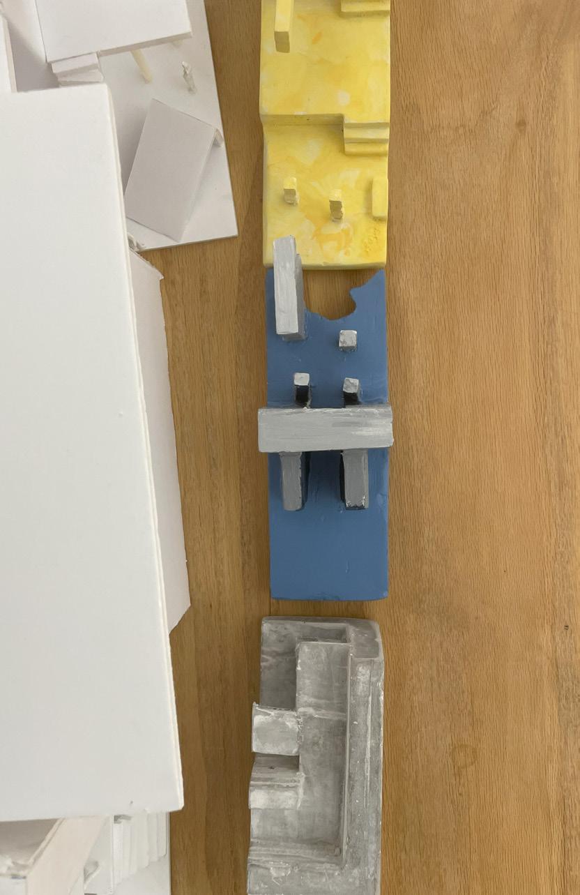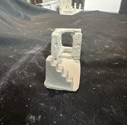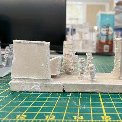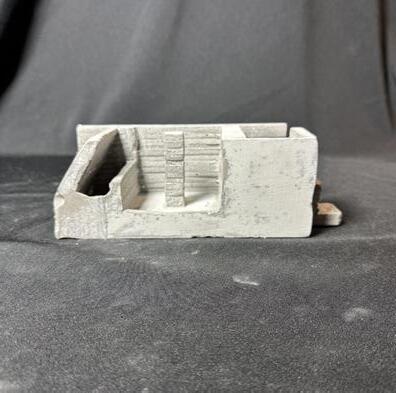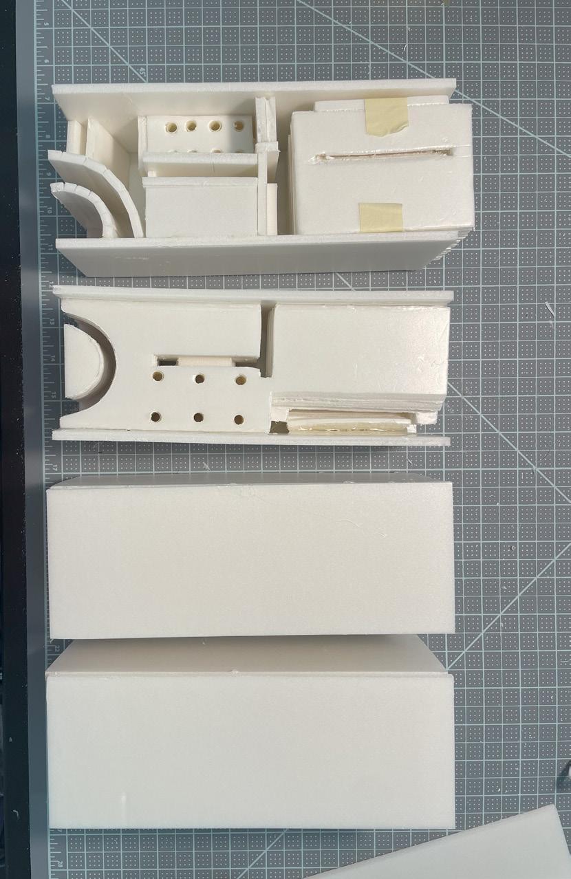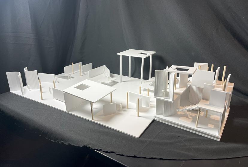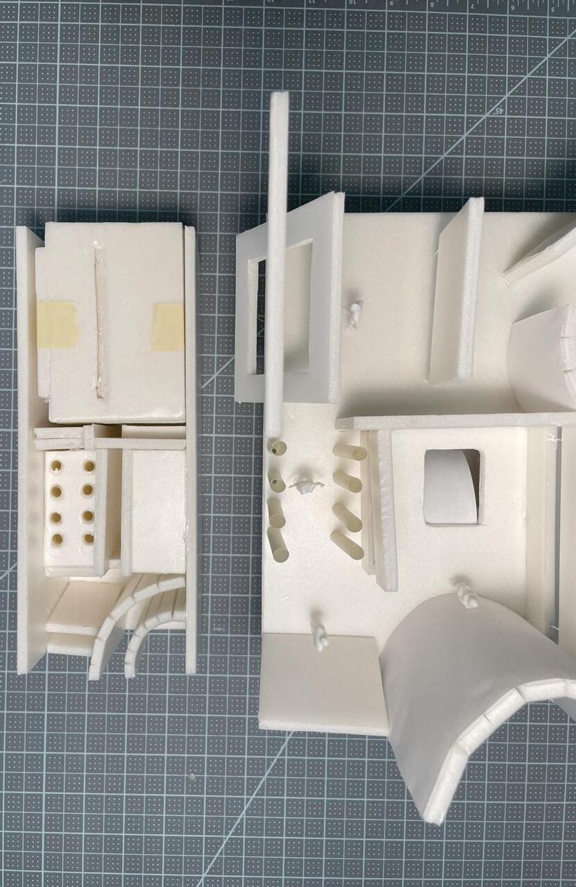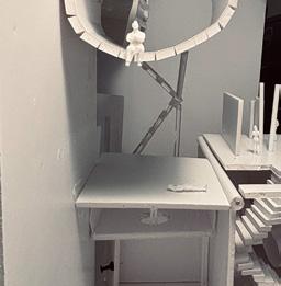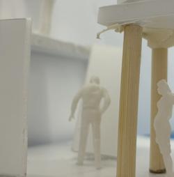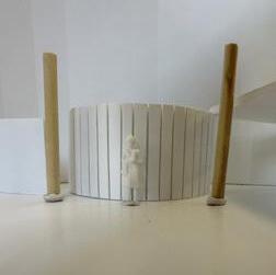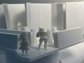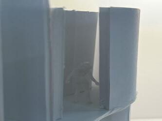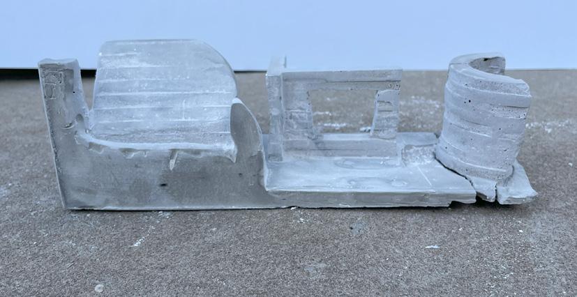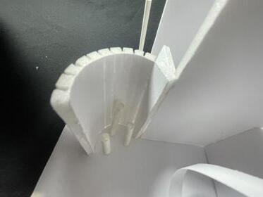 Next is category 21. Although I altered the shape and number of columns to best t the space, it s�ll has the same effect. I decided to make this scene more open by li�ing the ceiling above it. I did this in order to allow viewers to see this part of the display be�er. The image I chose shows four columns widely set. A human gure stands in the middle of the four columns. The image makes me feel scared and claustrophobic due to the columns being placed close together.
