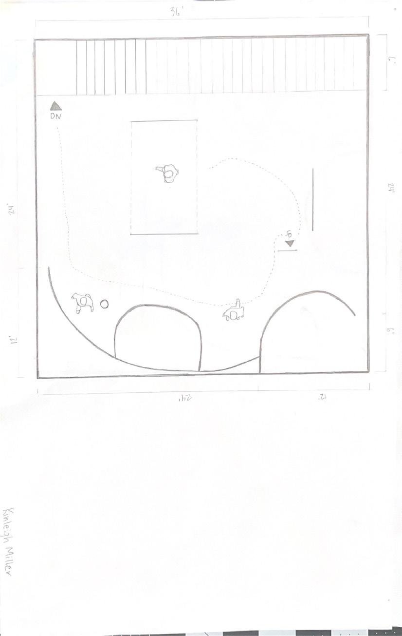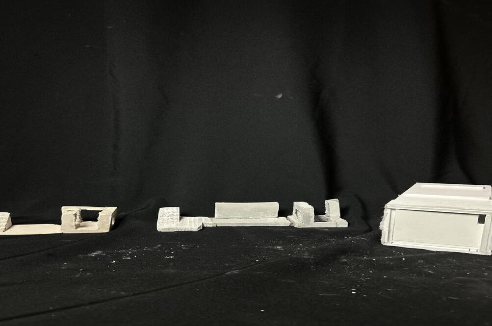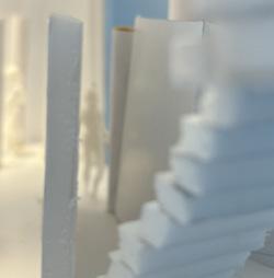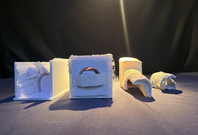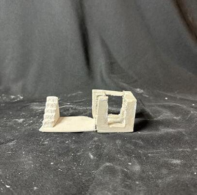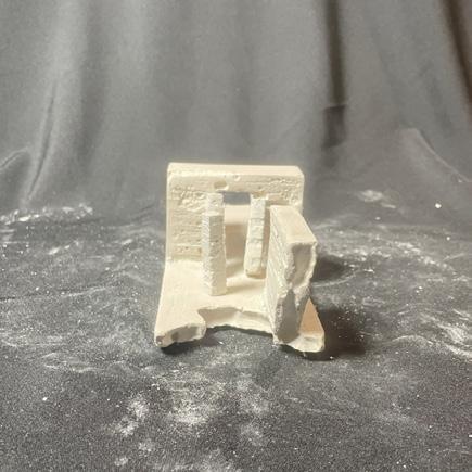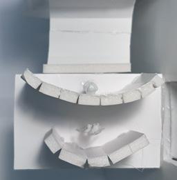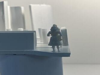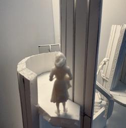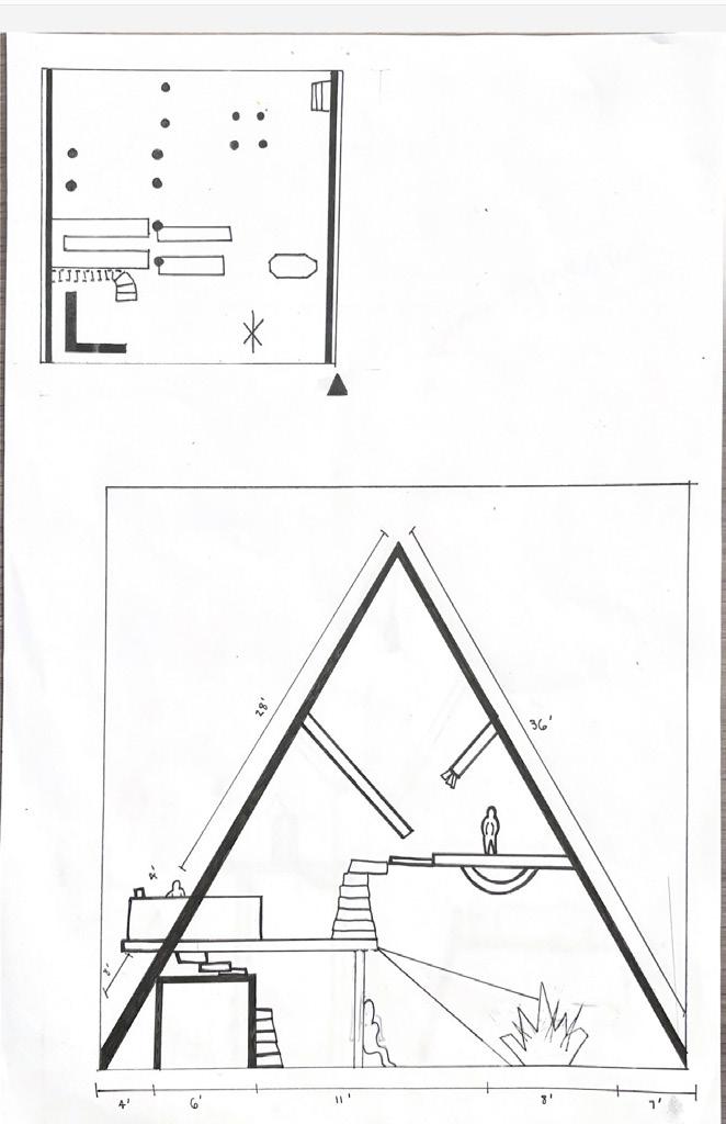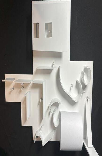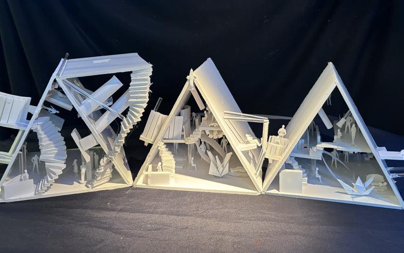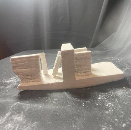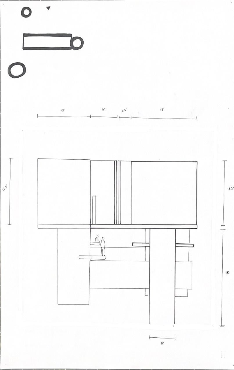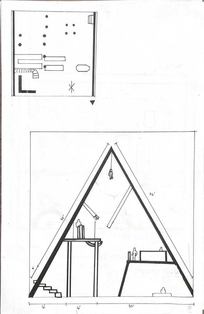 Next is category 21. Although I altered the shape and number of columns to best t the space, it s�ll has the same effect. I decided to make this scene more open by li�ing the ceiling above it. I did this in order to allow viewers to see this part of the display be�er. The image I chose shows four columns widely set. A human gure stands in the middle of the four columns. The image makes me feel scared and claustrophobic due to the columns being placed close together.