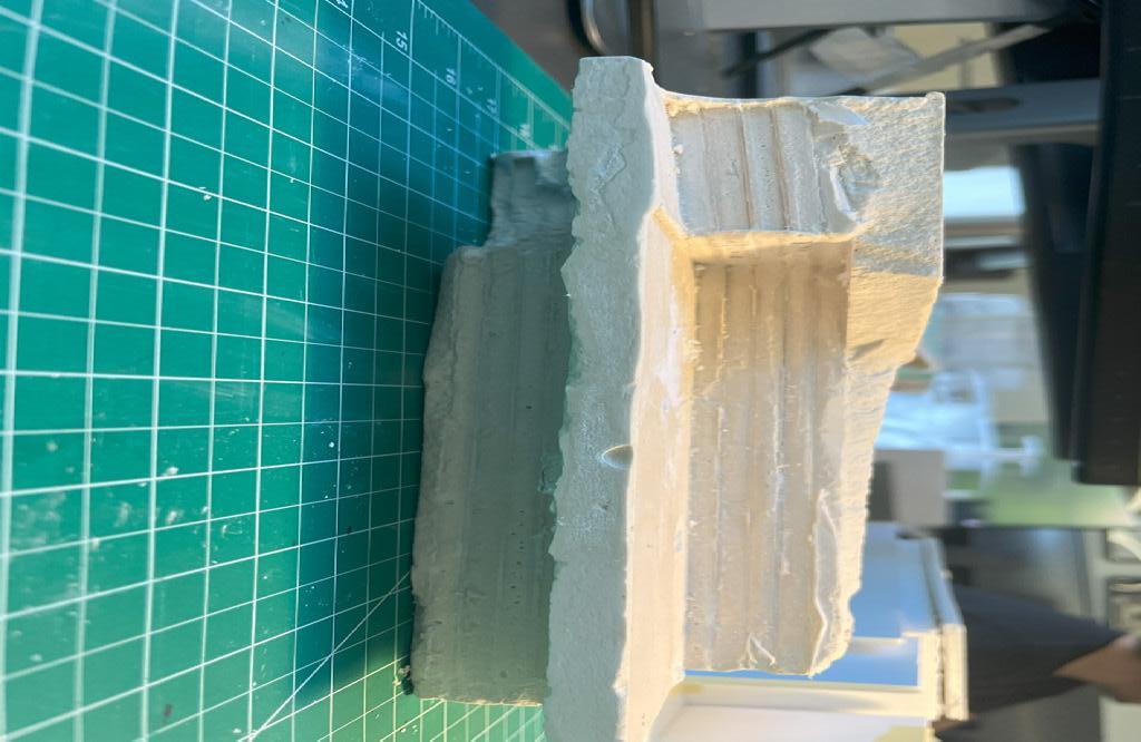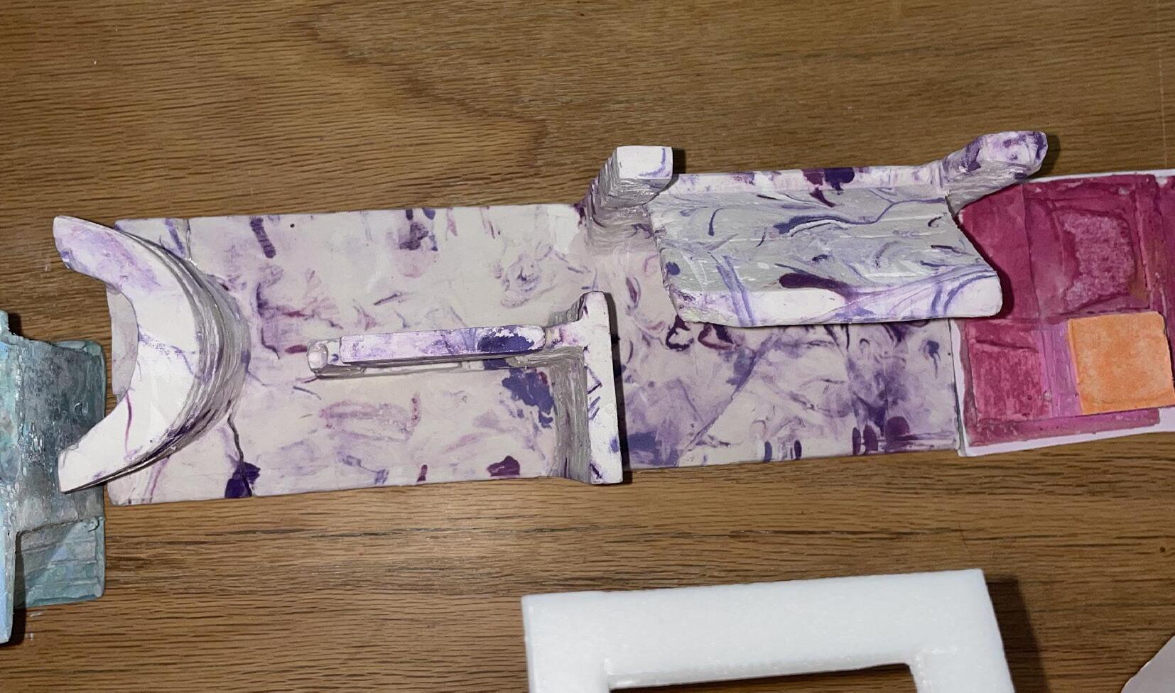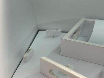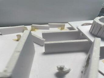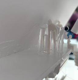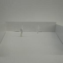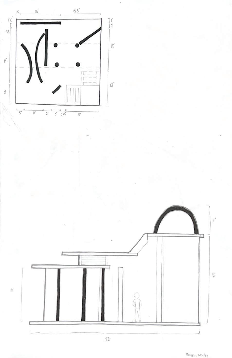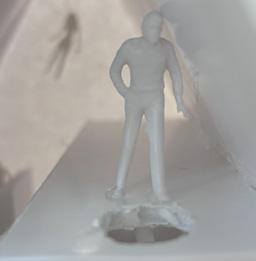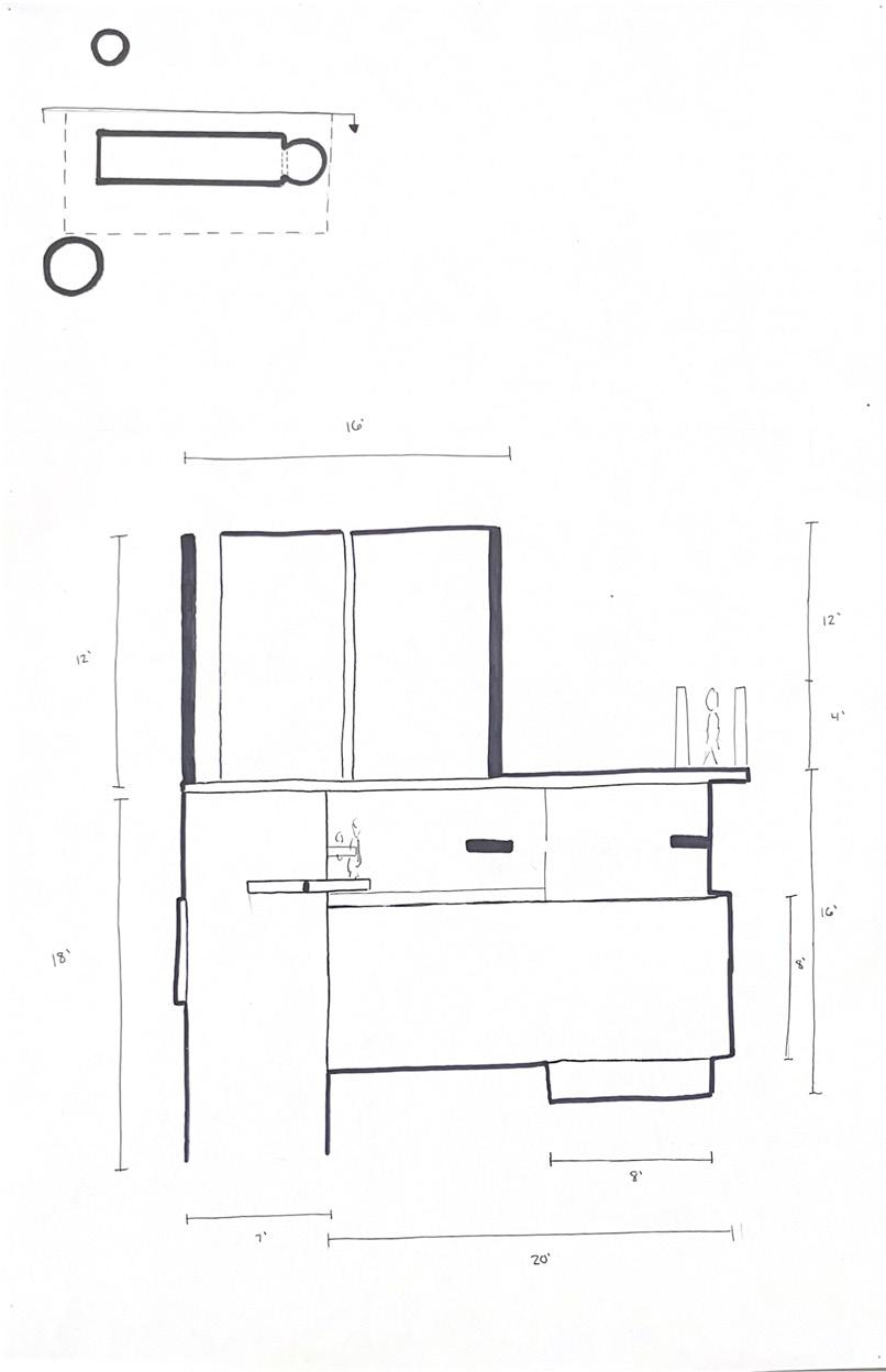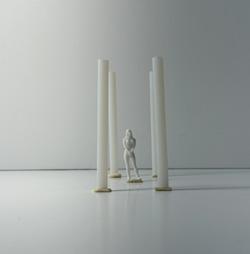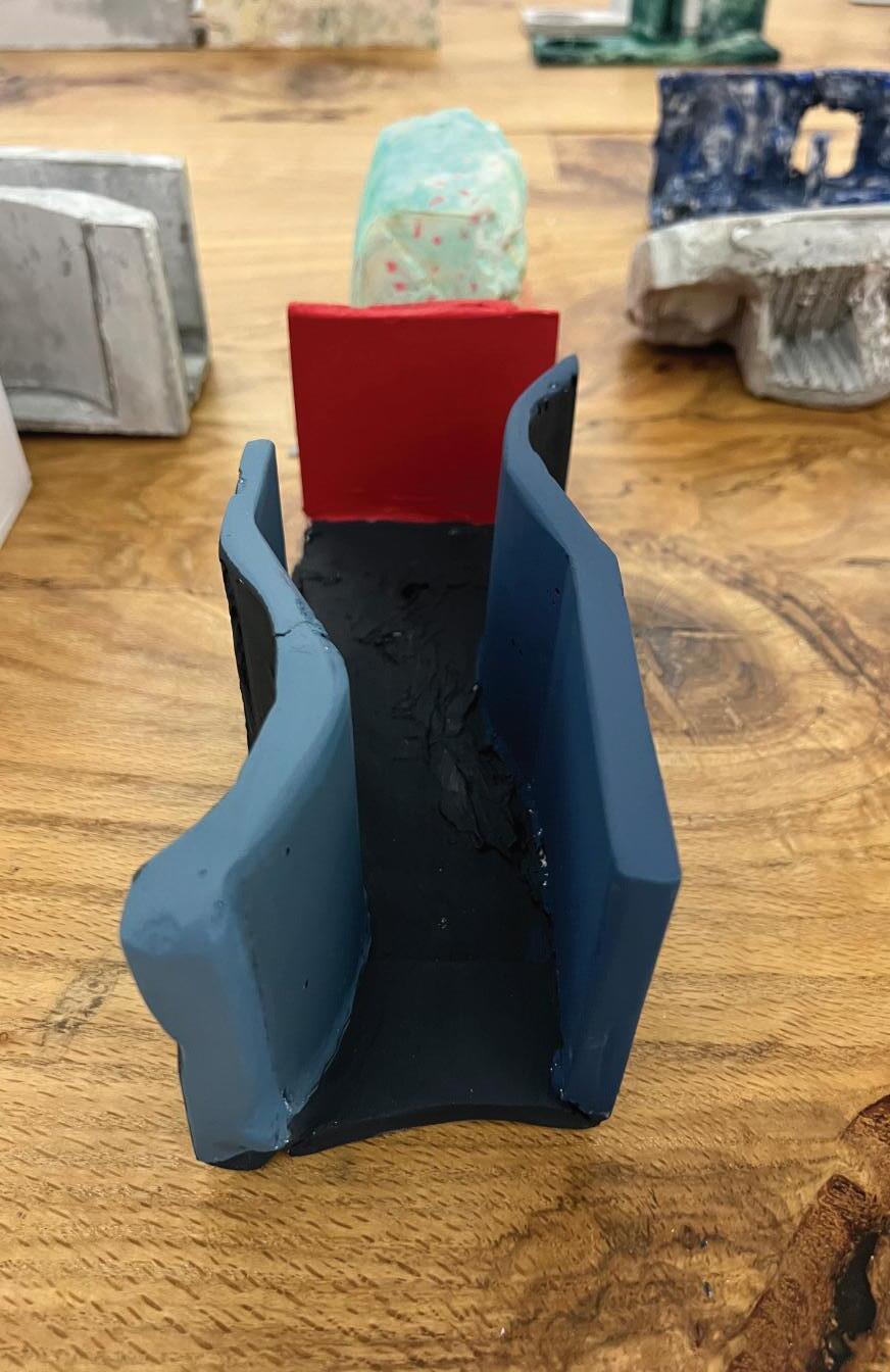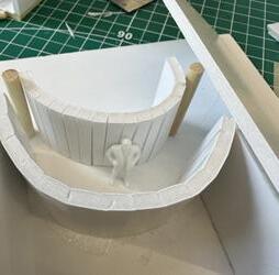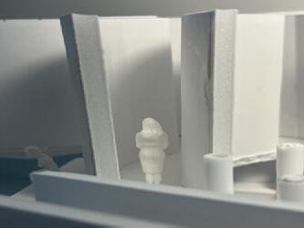 Next is category 21. Although I altered the shape and number of columns to best t the space, it s�ll has the same effect. I decided to make this scene more open by li�ing the ceiling above it. I did this in order to allow viewers to see this part of the display be�er. The image I chose shows four columns widely set. A human gure stands in the middle of the four columns. The image makes me feel scared and claustrophobic due to the columns being placed close together.