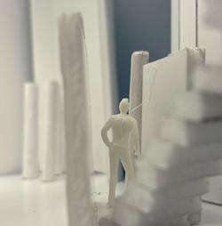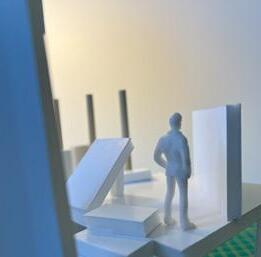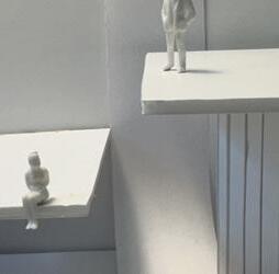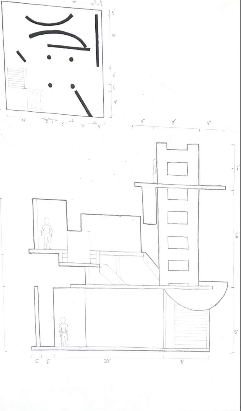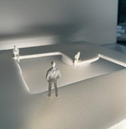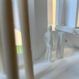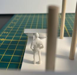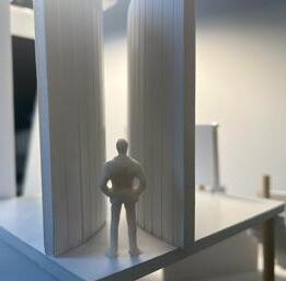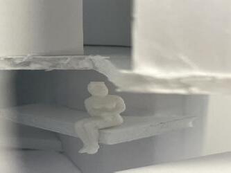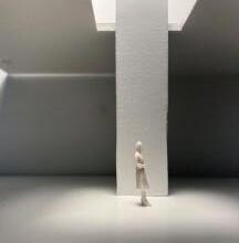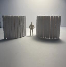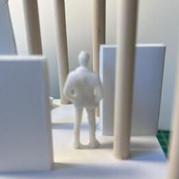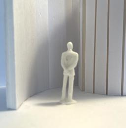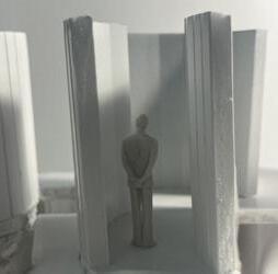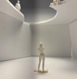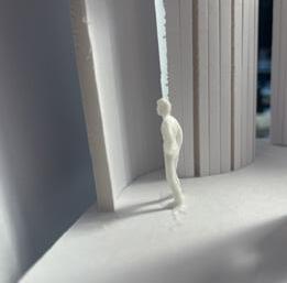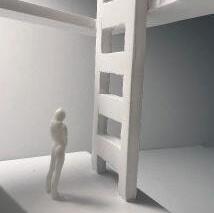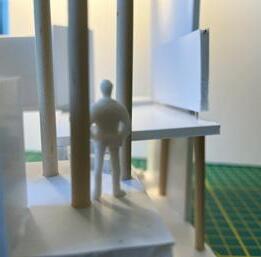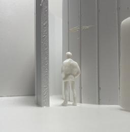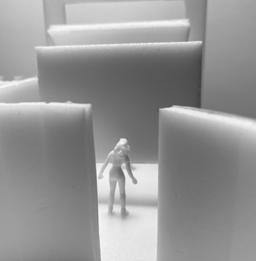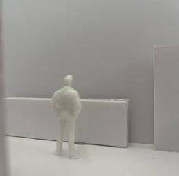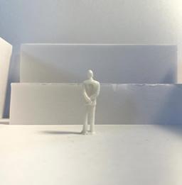To illustrate the sequence of wall, column, and space, I chose to use the emotion of sadness. The reason I chose this was because the figure constantly appears lonely. Throughout the photos, the figure is alone. My idea was to have the walls and columns guide the figures’ path through the space cube and up to different levels, while also making it tight and enclosed to represent the feeling of sadness. I used different elements to invoke a sense of isolation.