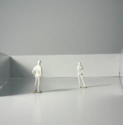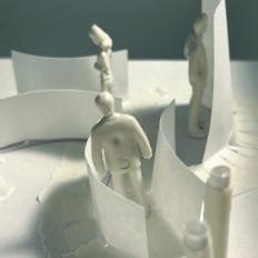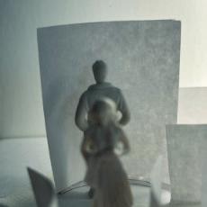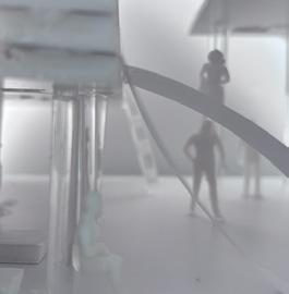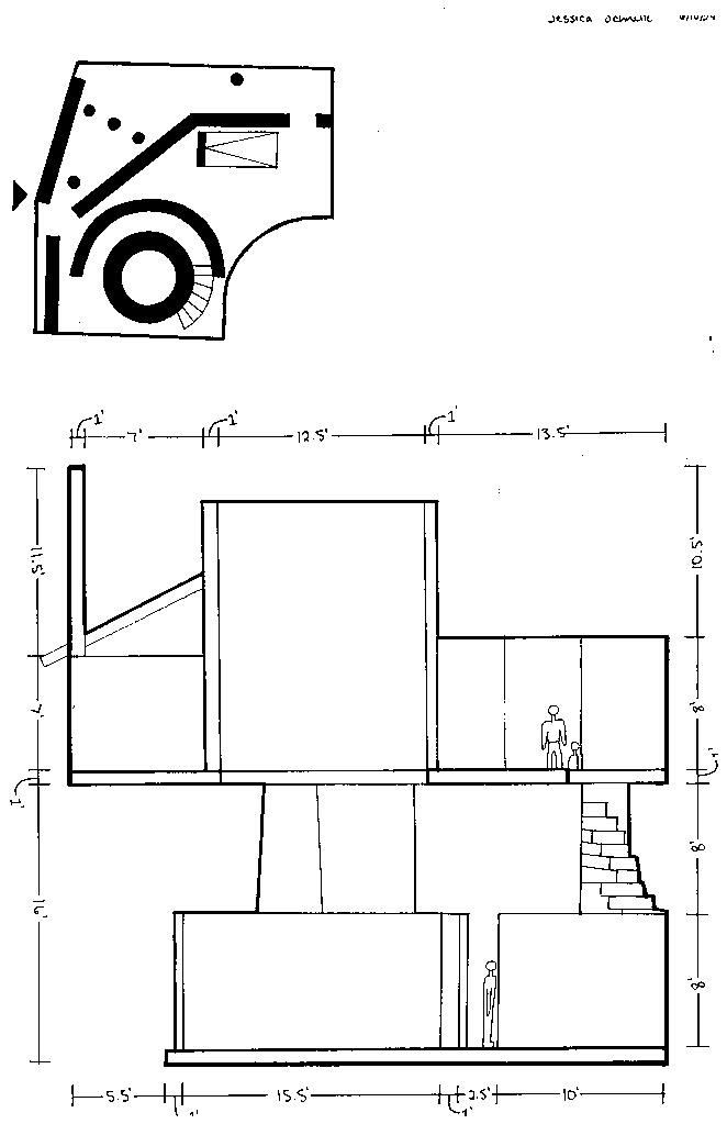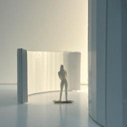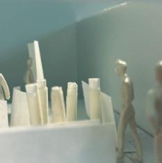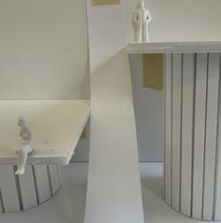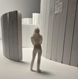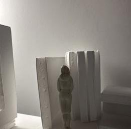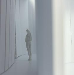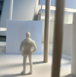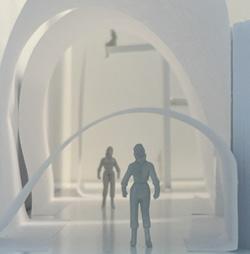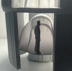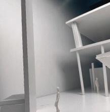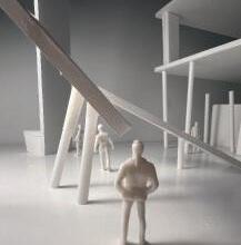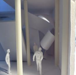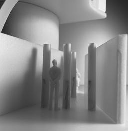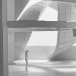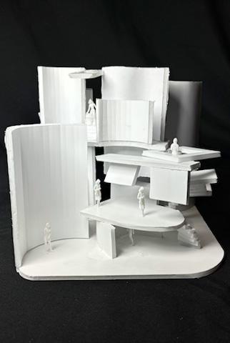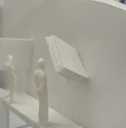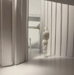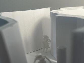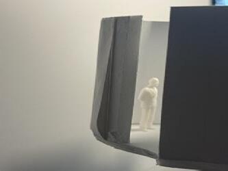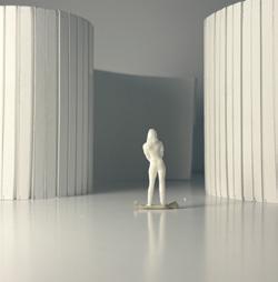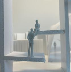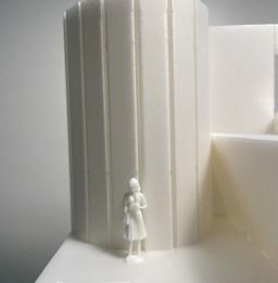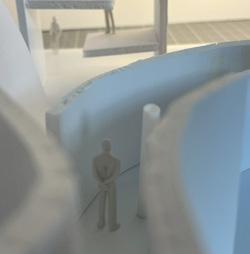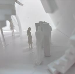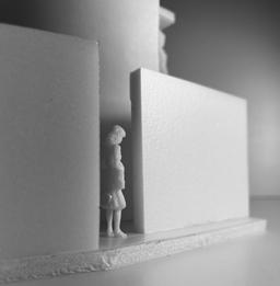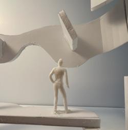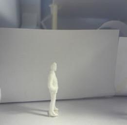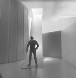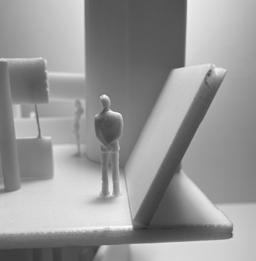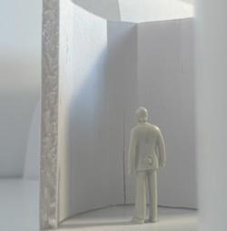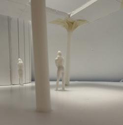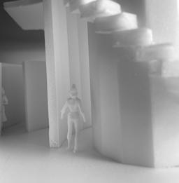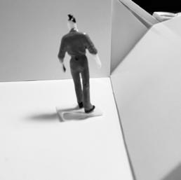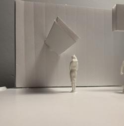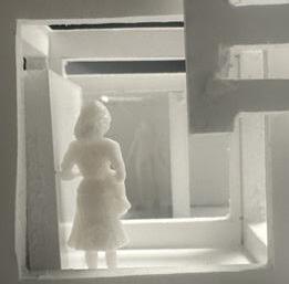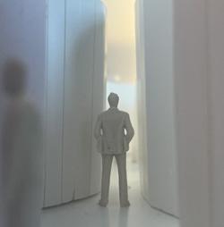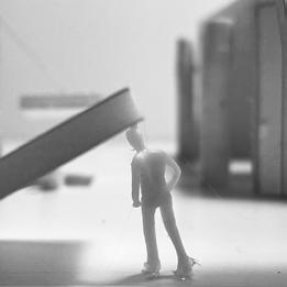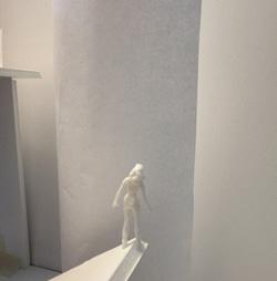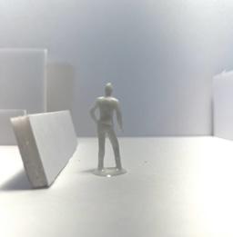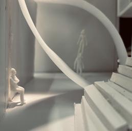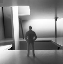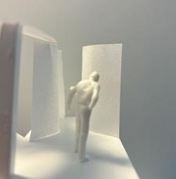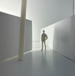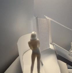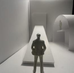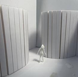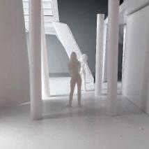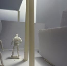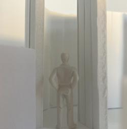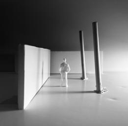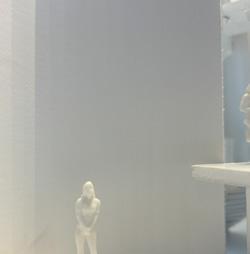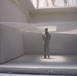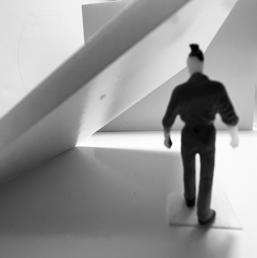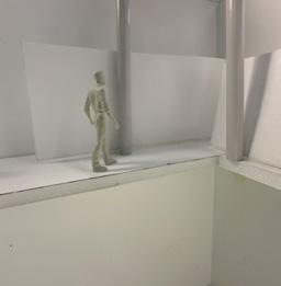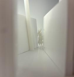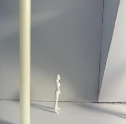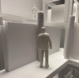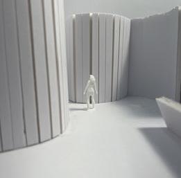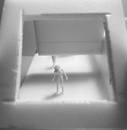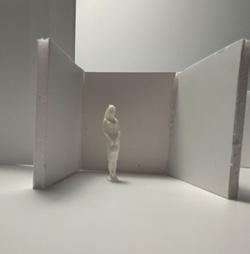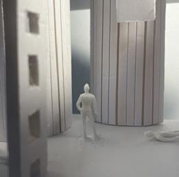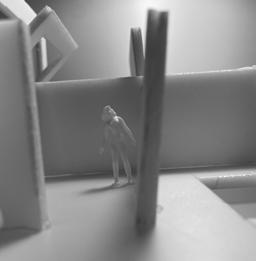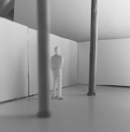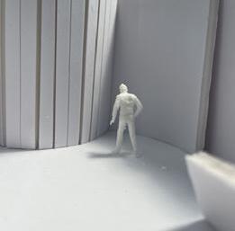 To illustrate the sequence of wall, column, and space, I chose to use the emotion of sadness. The reason I chose this was because the figure constantly appears lonely. In the photos I have selected, the figure is alone in the space. My idea was to have the walls and columns guide the figures’ path through the space cube and up to different levels. This space is tight and enclosed to represent the feeling of sadness.