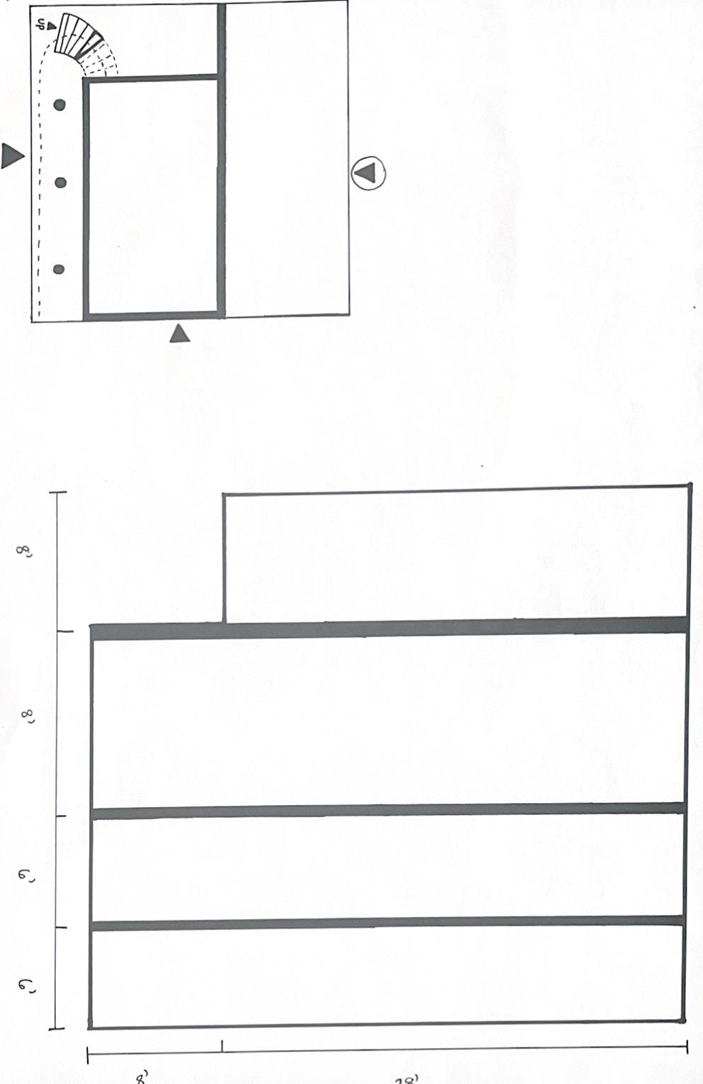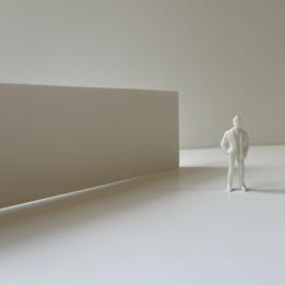 The second photo shows a wall forcing the figure to walk to the right and then straight. The wall is an obstruction that is difficult to navigate around. As I look at the wall, I realize that I am blocked. I was forced to go to the right to get around it. This is inconvenient and makes me feel frustrated.
