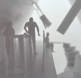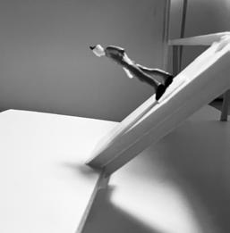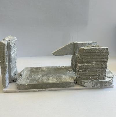 The path moves down one more set of stairs on to category 15. The image I chose shows a oa�ng wall, angled down. The human gure stands closely below the wall. I feel fear when looking at these images due to the angle of the wall, it appears as if the human gure is in danger.