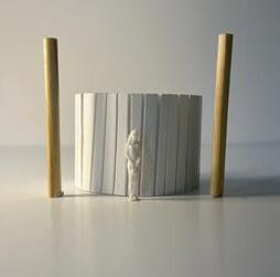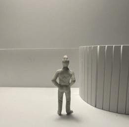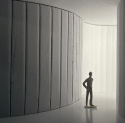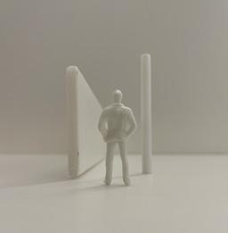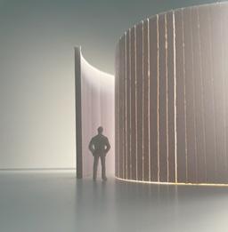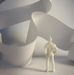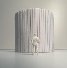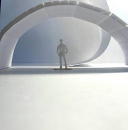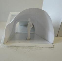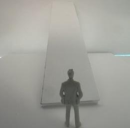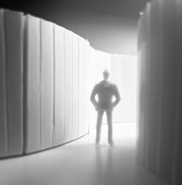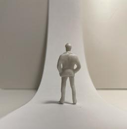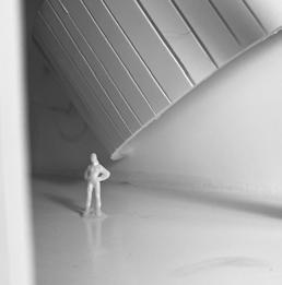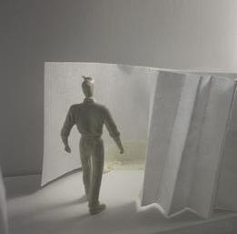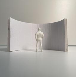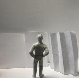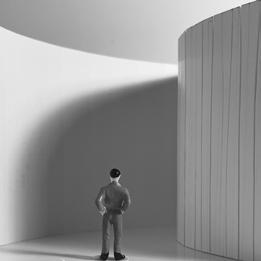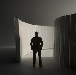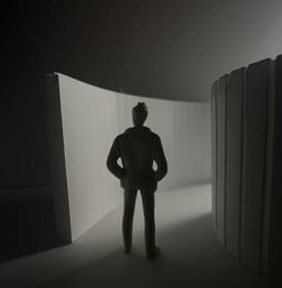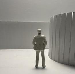 Flipping the cube, the human gure now stands at category 38. Although in the previous assignment I modied this to look more like category 37, I changed it back to look like category 38 again. The image I chose shows two curved walls moving in the same direc on. The human gure walks between the two walls. This image has a spooky feeling to it because it is unknown what is on the other side of the curve, and like anybody, I am fearful to nd out.