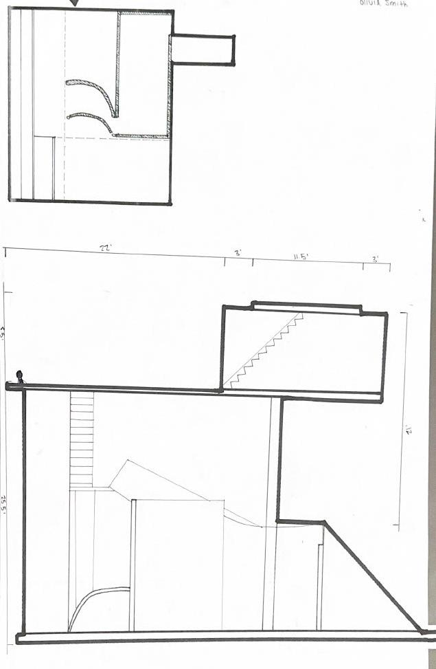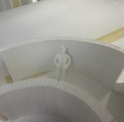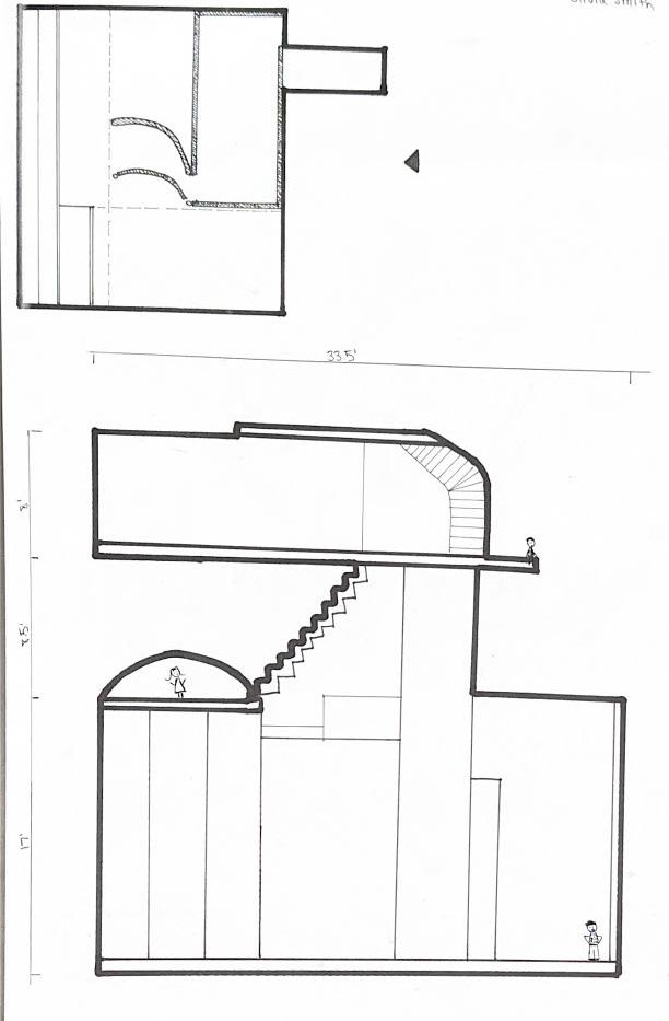 The eighth photo shows two curved walls with a figure in between. The figure stands in the middle and looks as if it is walking through the walls. As I stood in between the walls, I felt very enclosed. I felt as if I had limited space. The only way to go was the ladder that was in front of me.