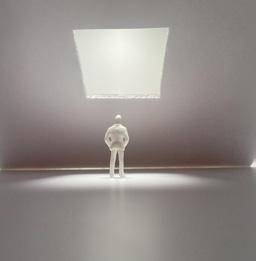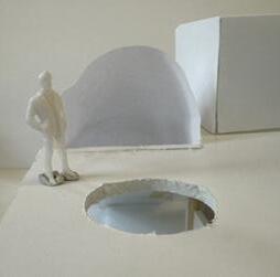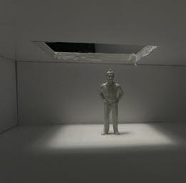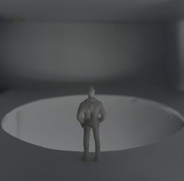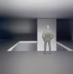 The viewer then turns to category 45. A square void is placed above the scene, and a human gure stands below peering up. This scene is very frightening to me due to the simplicity and eeriness of the environment.
