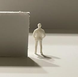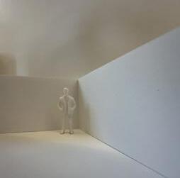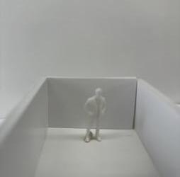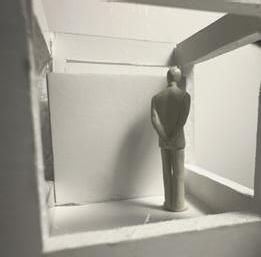 Flipping the cube again to be in category 31. The image I chose shows two walls forming a sharp corner. The human gure stands between the walls and peers into the corner. This image makes me feel trapped and scared as if I can’t escape.
