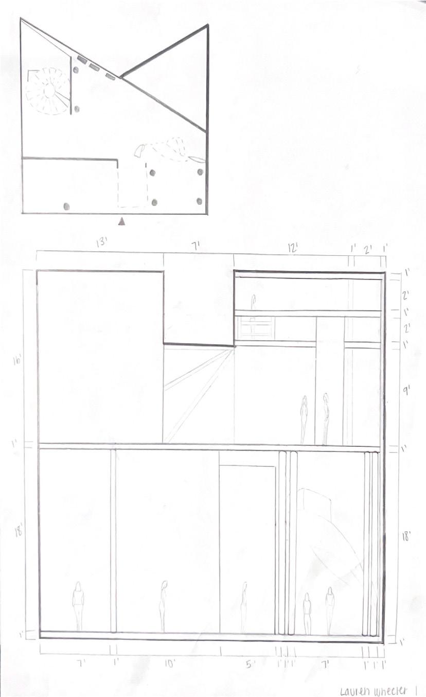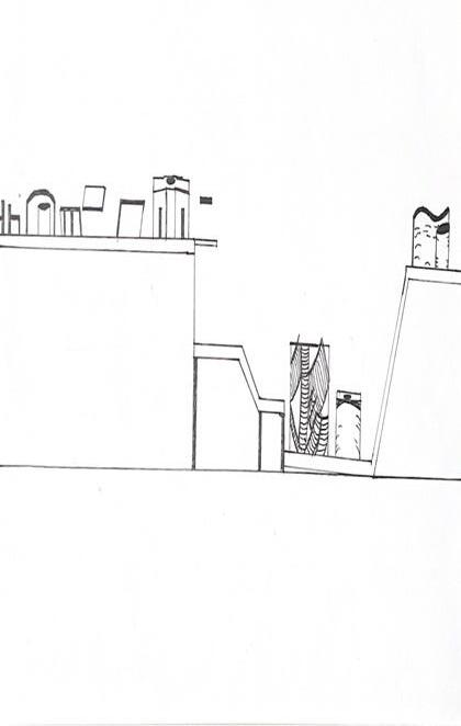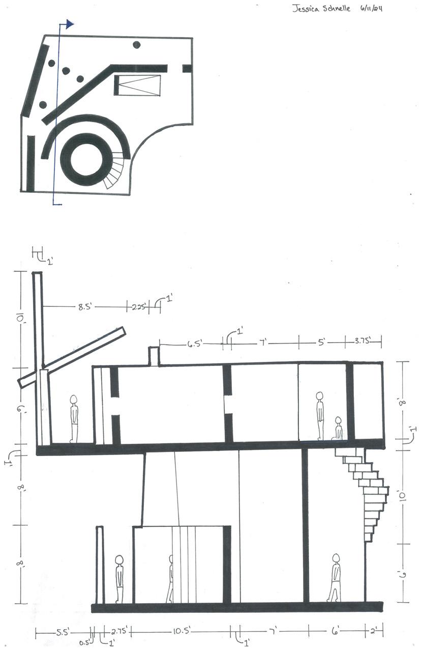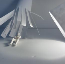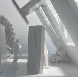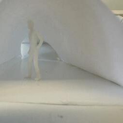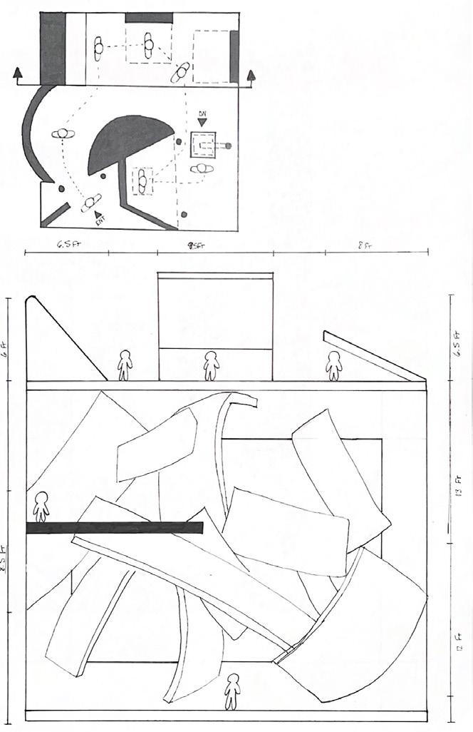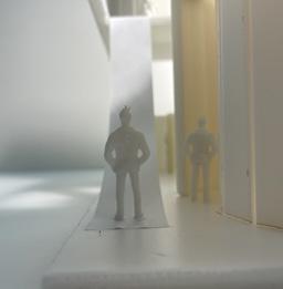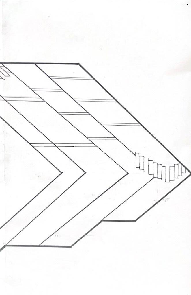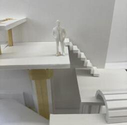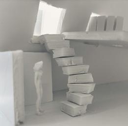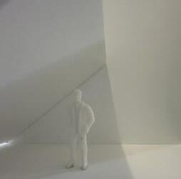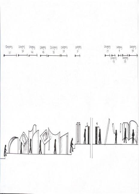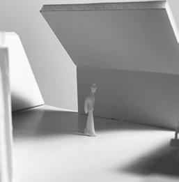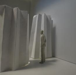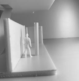 Category 16 follows as you move down the stairs, an angles wall is seen. The human gure stands below the wall. This image makes me feel as though the wall will fall down and crush me. I feel weary to stand below it.
