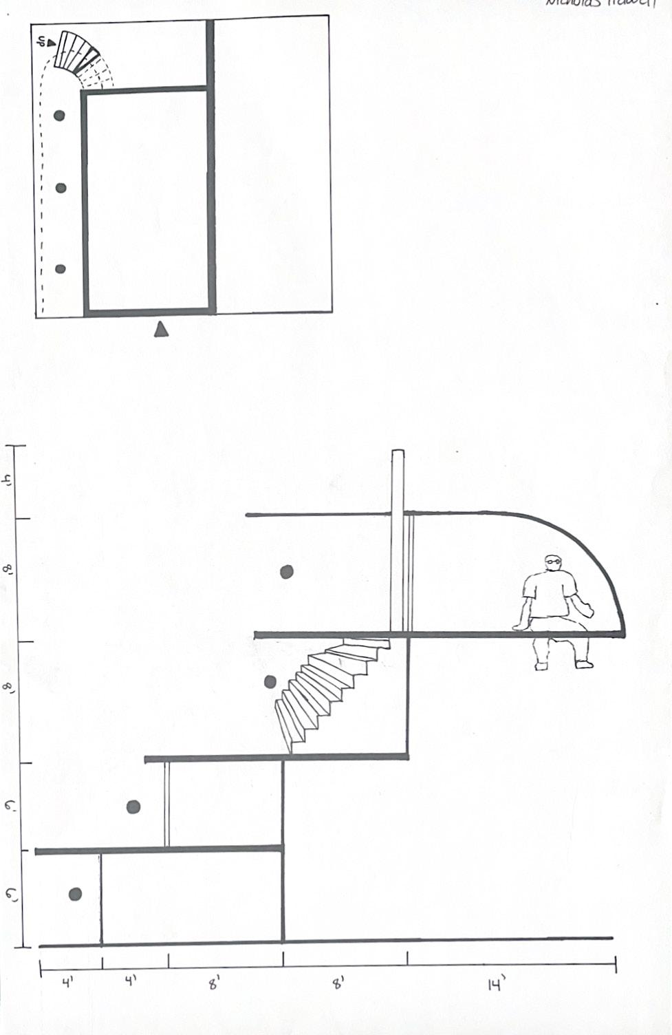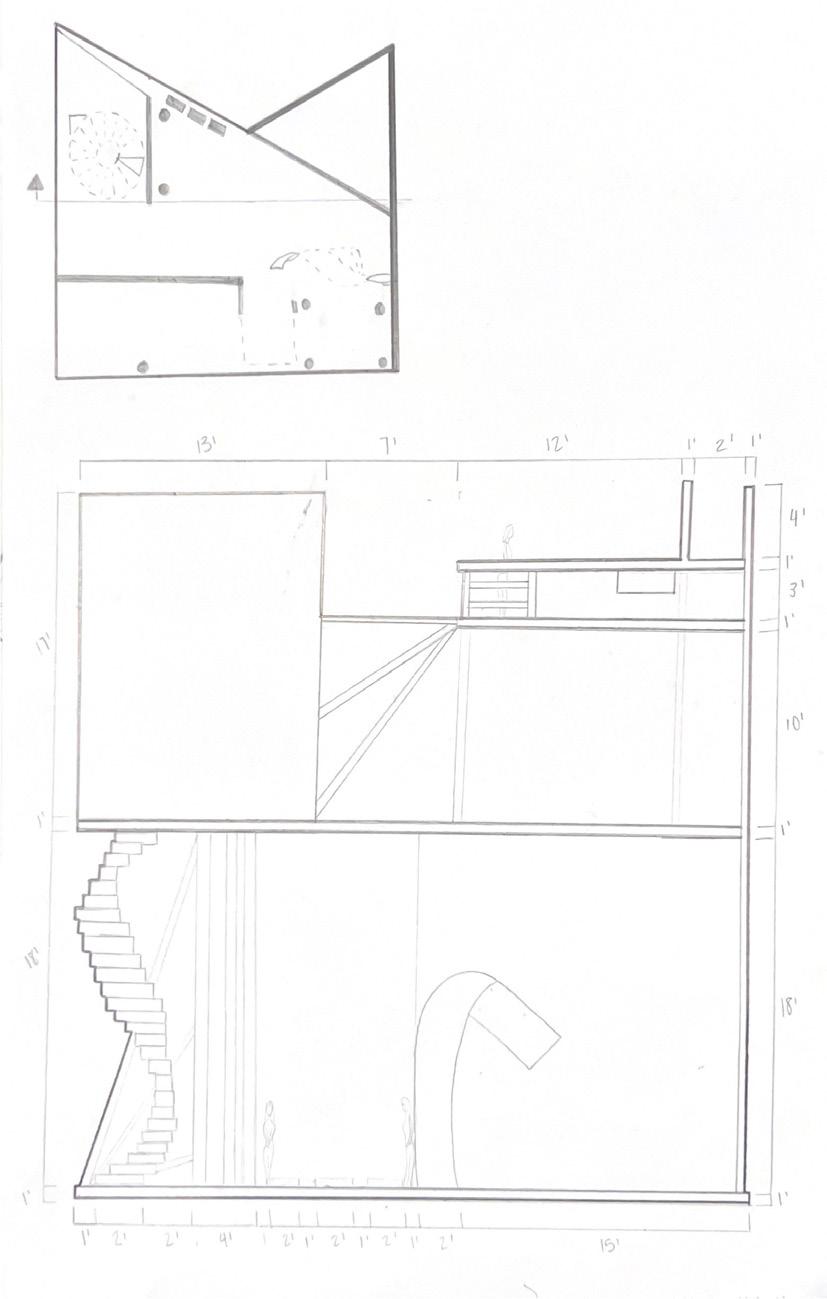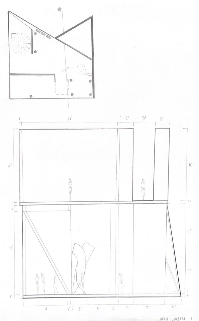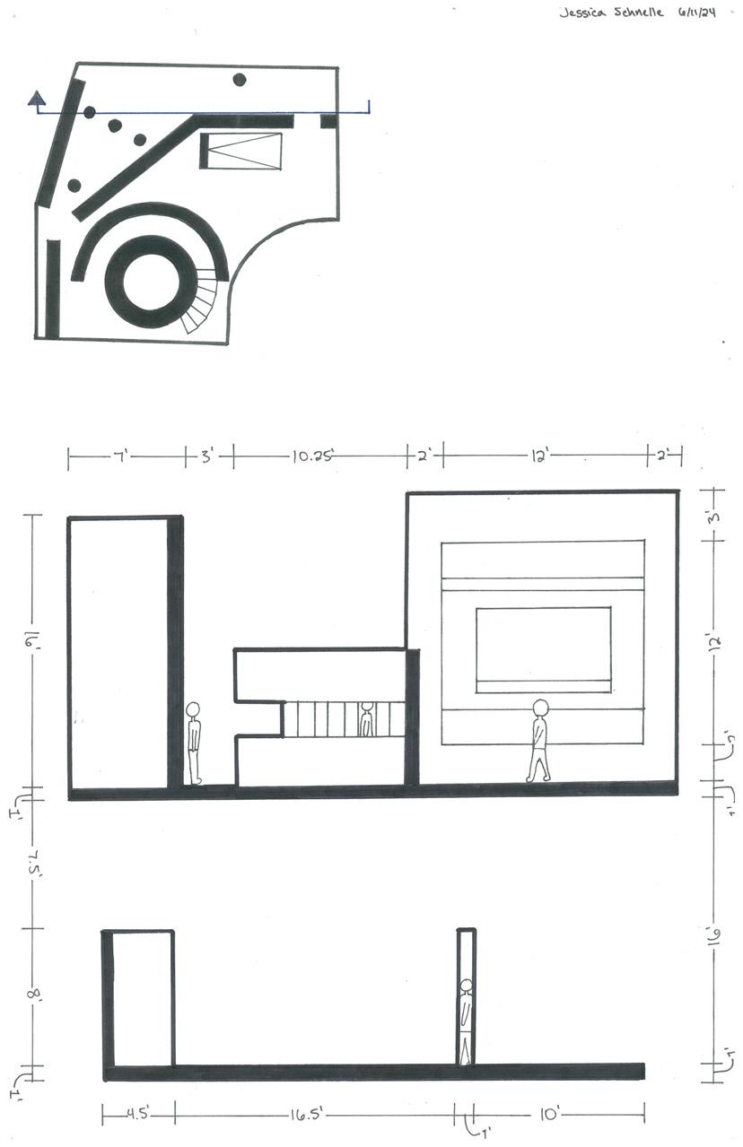 Category 16 follows as you move down the stairs, an angles wall is seen. The human gure stands below the wall. This image makes me feel as though the wall will fall down and crush me. I feel weary to stand below it.
