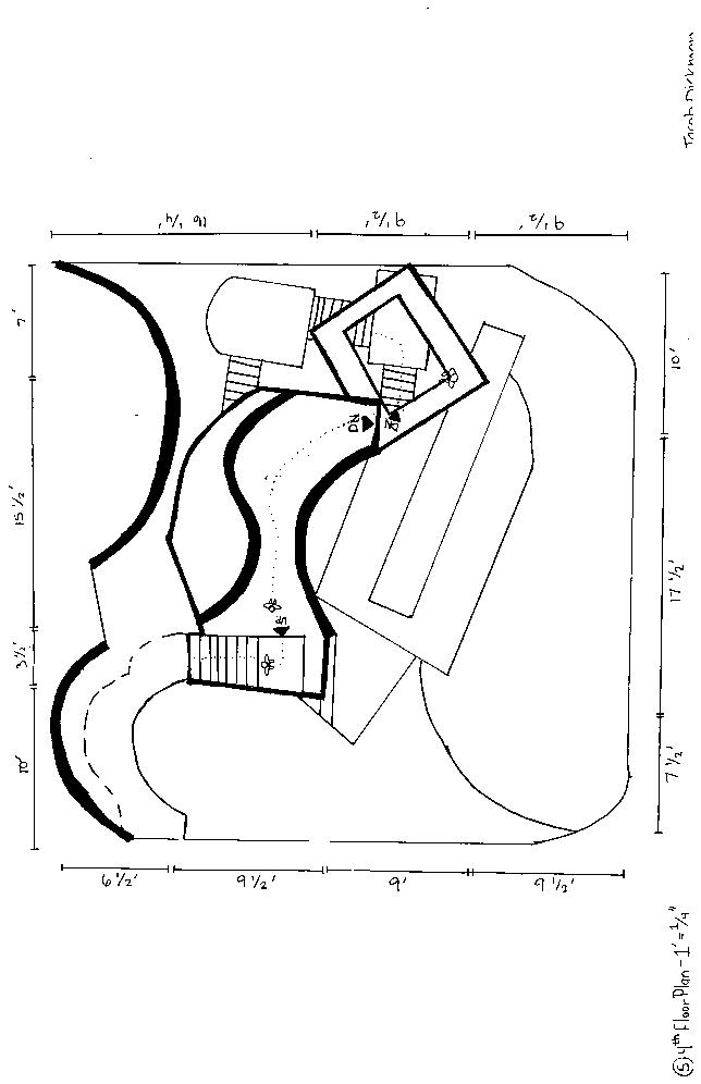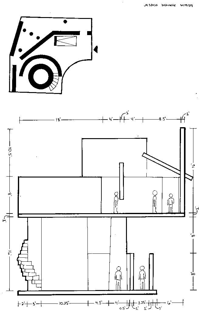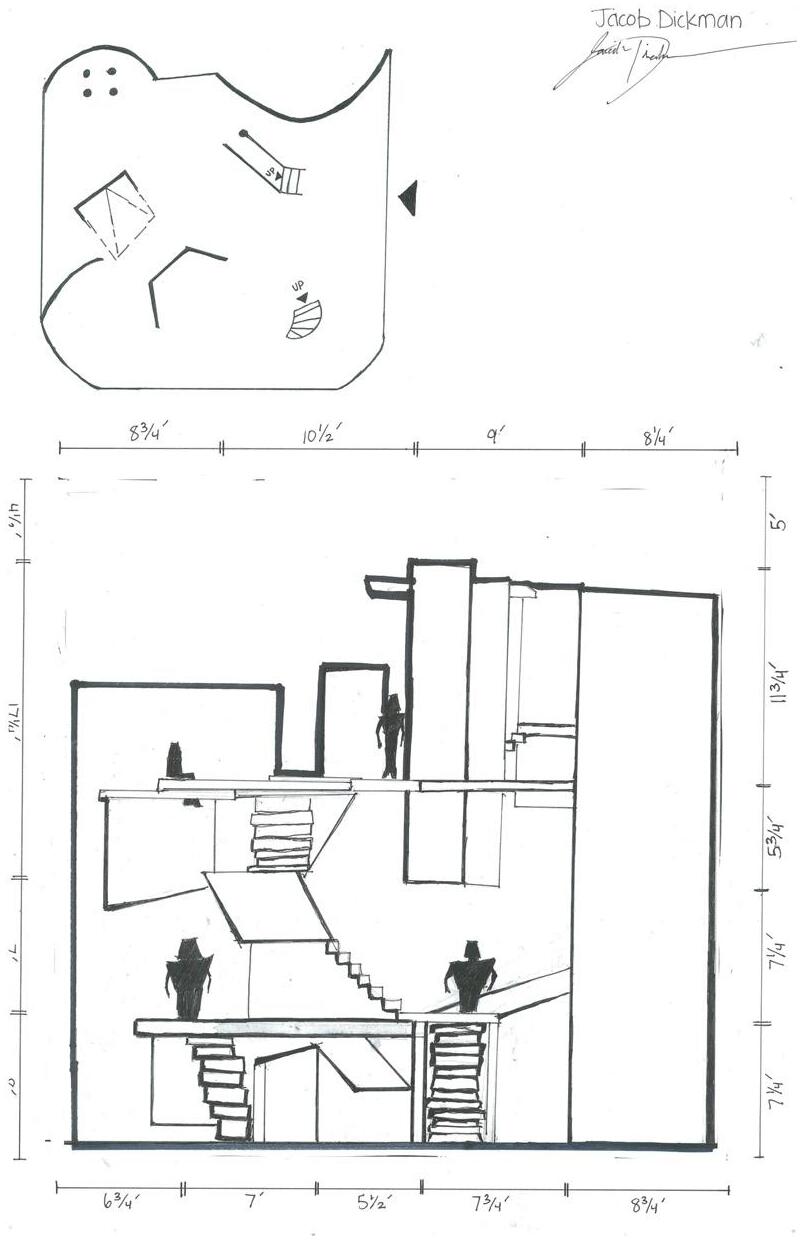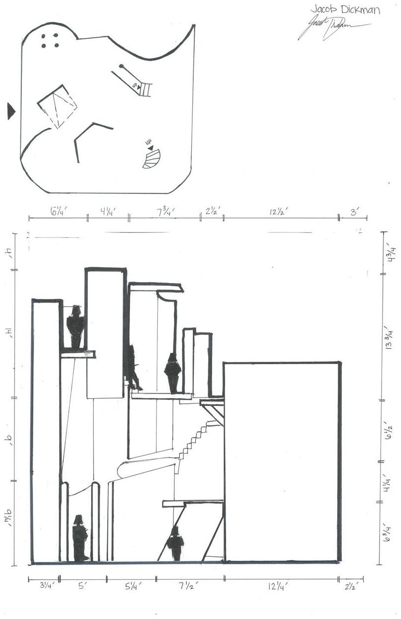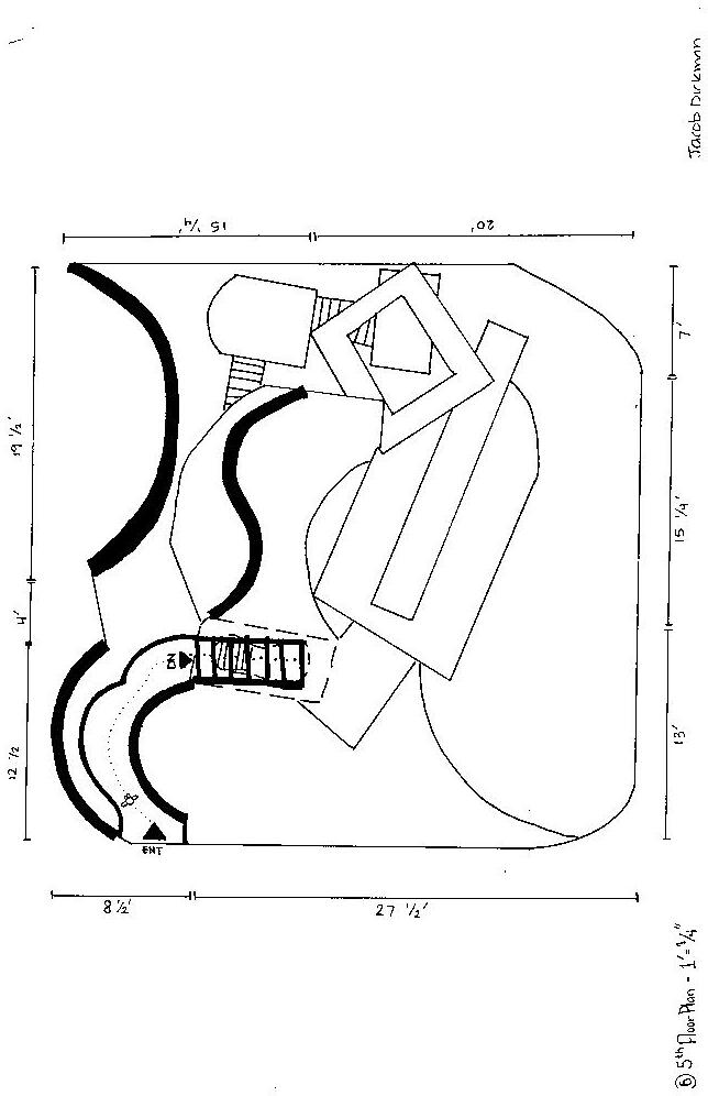 Category 16 follows as you move down the stairs, an angles wall is seen. The human gure stands below the wall. This image makes me feel as though the wall will fall down and crush me. I feel weary to stand below it.